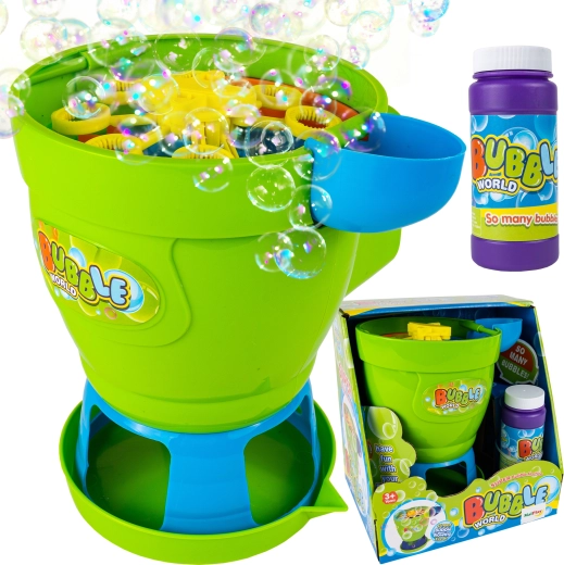 Crea uno spettacolo di bolle istantaneo con questa affidabile macchina per bolle. Basta aggiungere la soluzione, accendere e guardare mentre centinaia di bollicine frizzanti riempiono lo spazio. Il corpo compatto e la base stabile ne facilitano il posizionamento su tavolo, prato o terrazza.