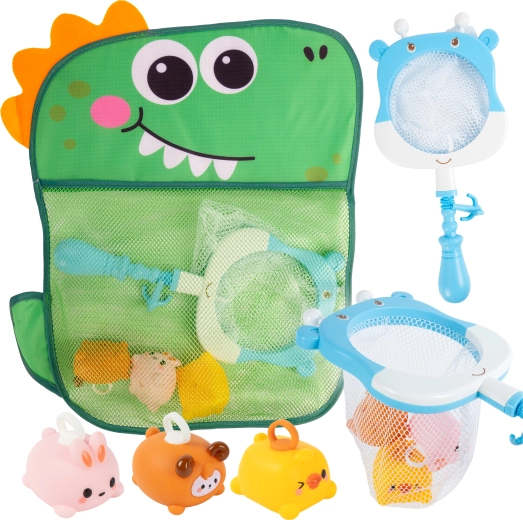 Questo set di giochi da bagno trasforma ogni momento del bagnetto in una divertente battuta di pesca. I bambini possono catturare gli animaletti con la canna da pesca o con il retino: sono dotati di pratici anelli per essere afferrati con facilità. Grazie ai materiali leggeri, i giochi sono facili da impugnare e ideali per le manine dei più piccoli.