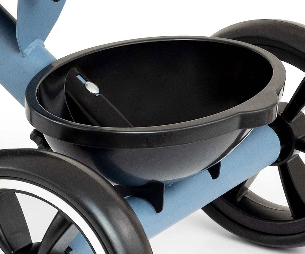 Un pratico cestino anteriore e una vaschetta posteriore ospitano tutto l’occorrente per l’uscita – dai giochi preferiti alla borraccia.