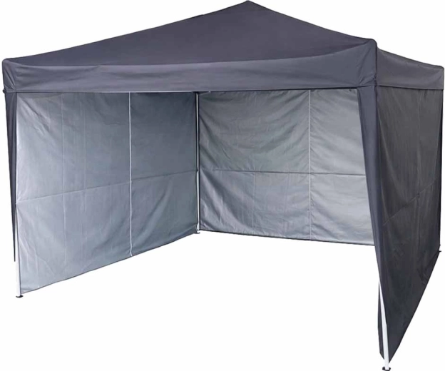 Il sistema con pulsante di bloccaggio consente un’apertura e una chiusura lampo senza attrezzi. Ideale quando serve allestire rapidamente una copertura per un evento.