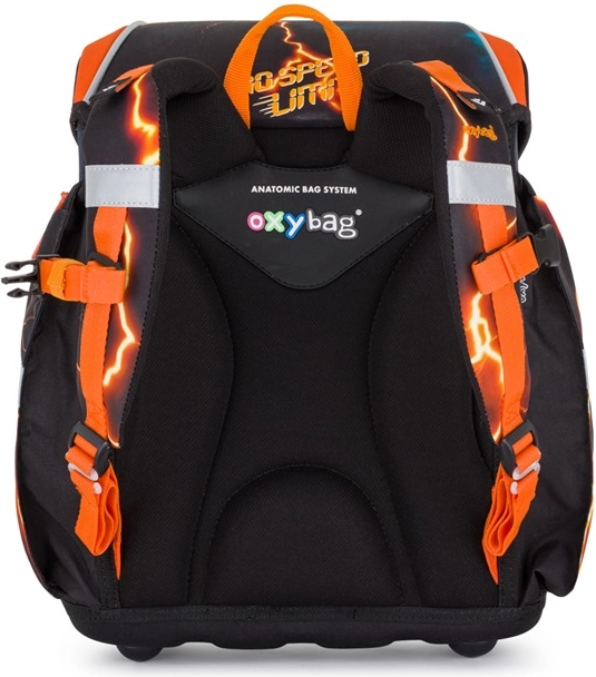 Il set scolastico Oxybag Premium Light Auto combina design moderno con attenzione a ergonomia e sicurezza. La costruzione alleggerita dello zaino (solo 970 g), schienale sagomato anatomicamente e spallacci morbidi e larghi garantiscono un trasporto confortevole tutto il giorno. Gli elementi riflettenti aumentano la visibilità del bambino nel tragitto verso scuola.