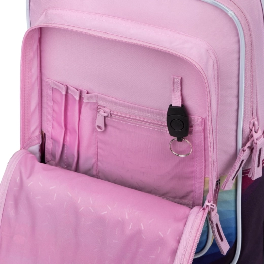 Tre scomparti separati, organizer interno e tasca imbottita per notebook o tablet mantengono l’attrezzatura scolastica ordinata e al sicuro.