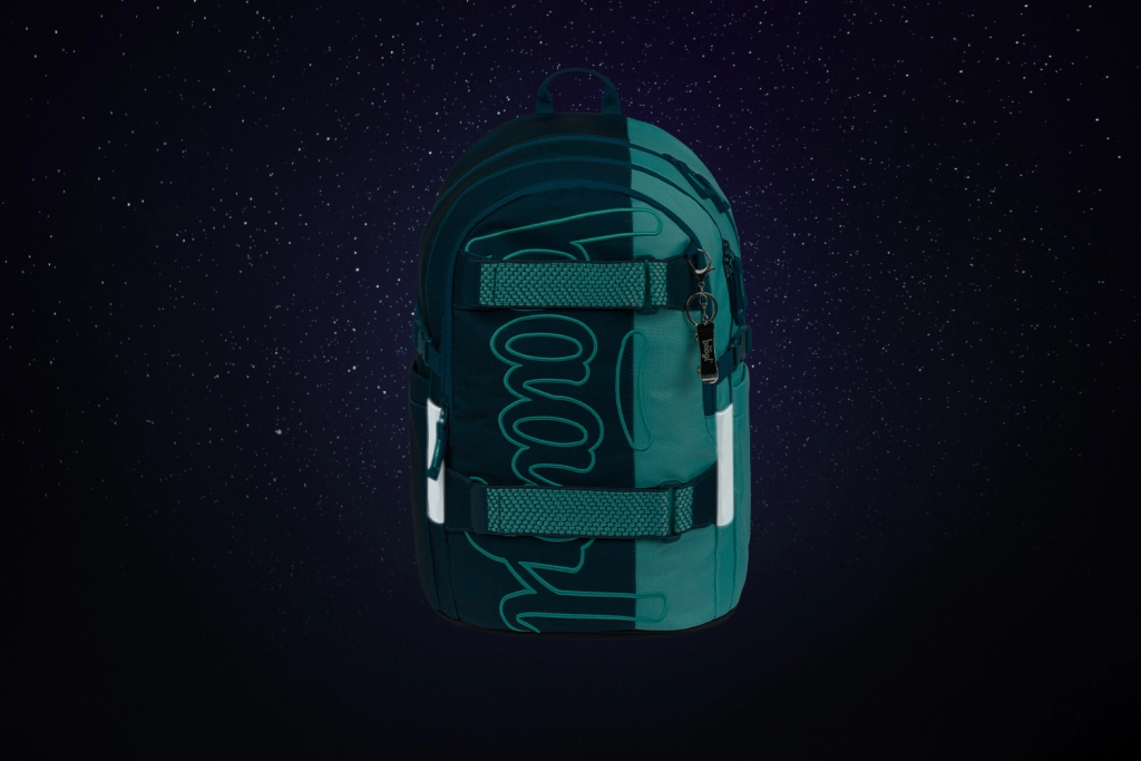 Set scolastico BAAGL coordinato con stile per ragazzi più grandi e studenti, comprende lo zaino leggerissimo Skate con fissaggio per skateboard, un capiente astuccio e la borsa sportiva pieghevole Hoop. Tutto realizzato con materiali riciclati e idrorepellenti certificati GRS, con elementi riflettenti e affidabili cerniere YKK.