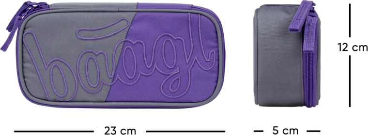 Pratico astuccio scolastico BAAGL Etue Dual GRS con doppia patta ribaltabile, dotato di ampio scomparto principale, tasca interna e finestrina per l’orario. Grazie alle cerniere YKK di marca e ai cursori robusti è estremamente resistente, realizzato in materiale riciclato con certificazione GRS. L’astuccio è fornito senza contenuto.
