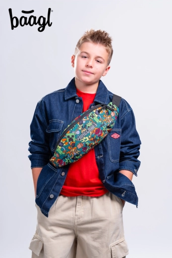 Il marsupio BAAGL dallo stile alla moda nel popolare design MINECRAFT Chaos è un accessorio pratico per ogni giorno. Offre una cerniera YKK a doppio cursore, cinghie regolabili su entrambi i lati e una fibbia MEICO robusta. È idrorepellente, realizzato in materiale riciclato e comunque ultraleggero – pesa solo 100 g con un volume di 4,5 l.