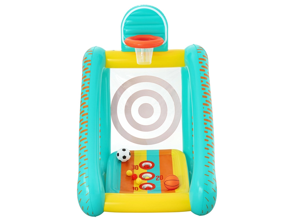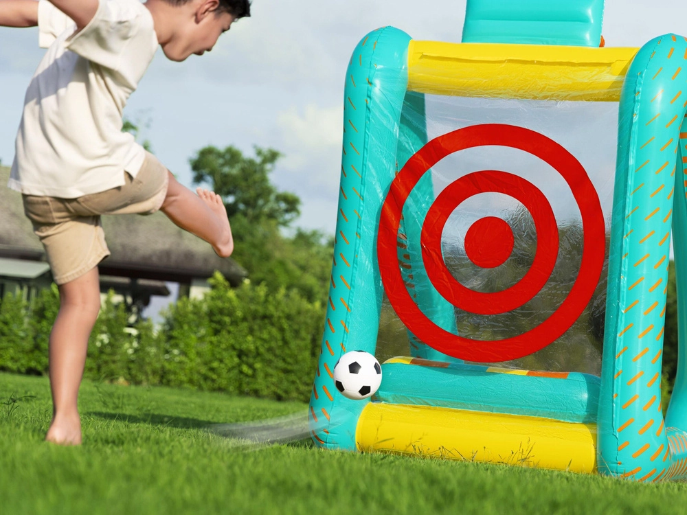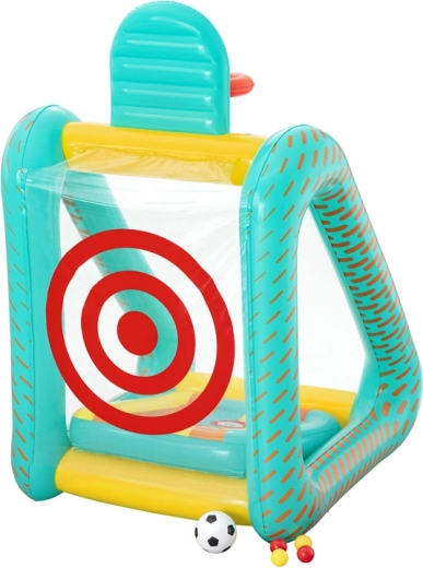Il set multifunzione gonfiabile Bestway Perfect Aim 3 in 1 trasforma cortile, giardino o un ampio soggiorno in un’arena piena di movimento. Le dimensioni generose consentono a più bambini di giocare contemporaneamente e le morbide pareti in PVC aumentano la sicurezza a ogni rimbalzo.