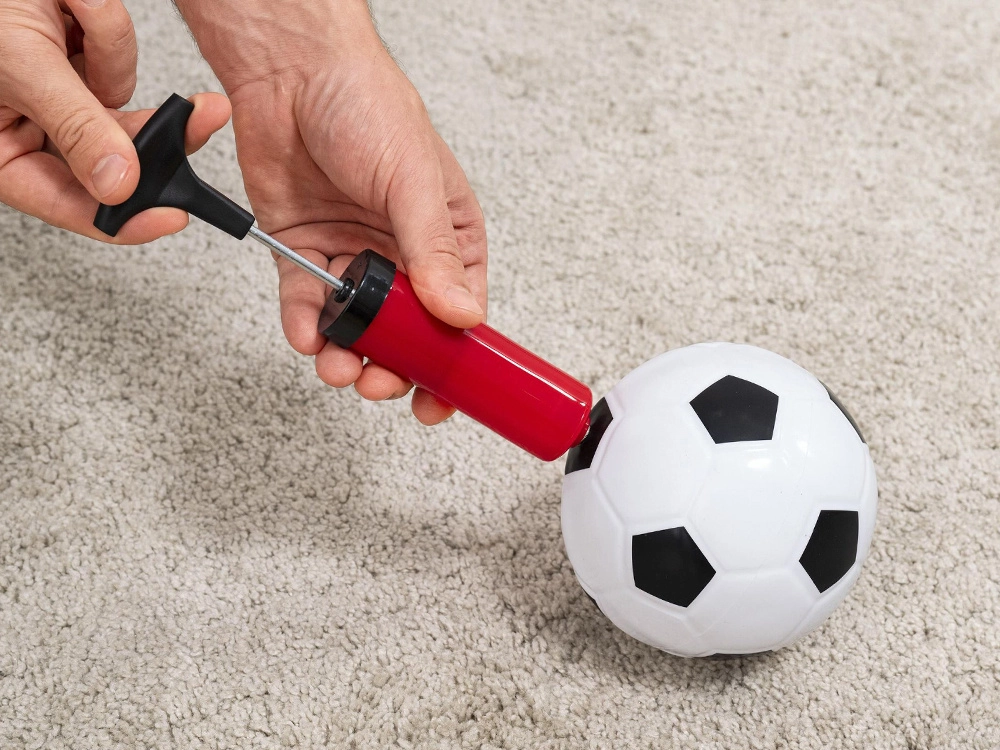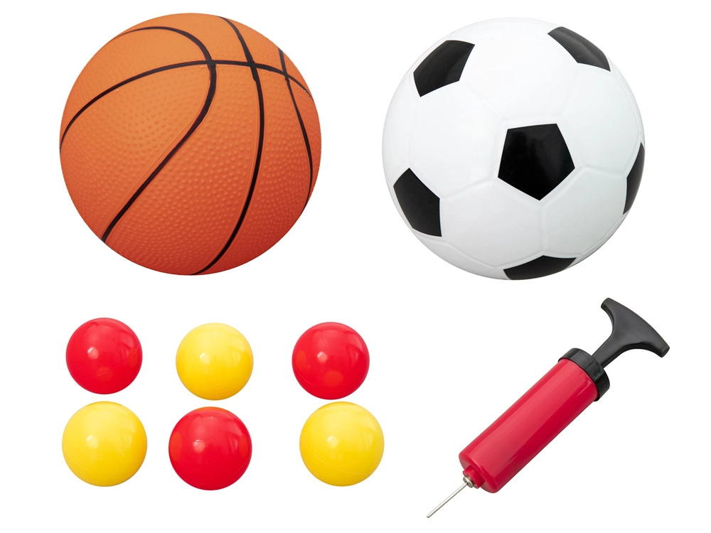 Il set comprende una pompa manuale e diversi palloni: mini palla da basket, mini palla da calcio e piccole palline da lancio. Basta gonfiare e giocare.