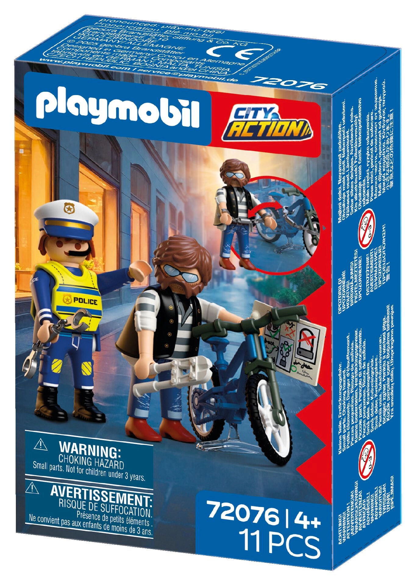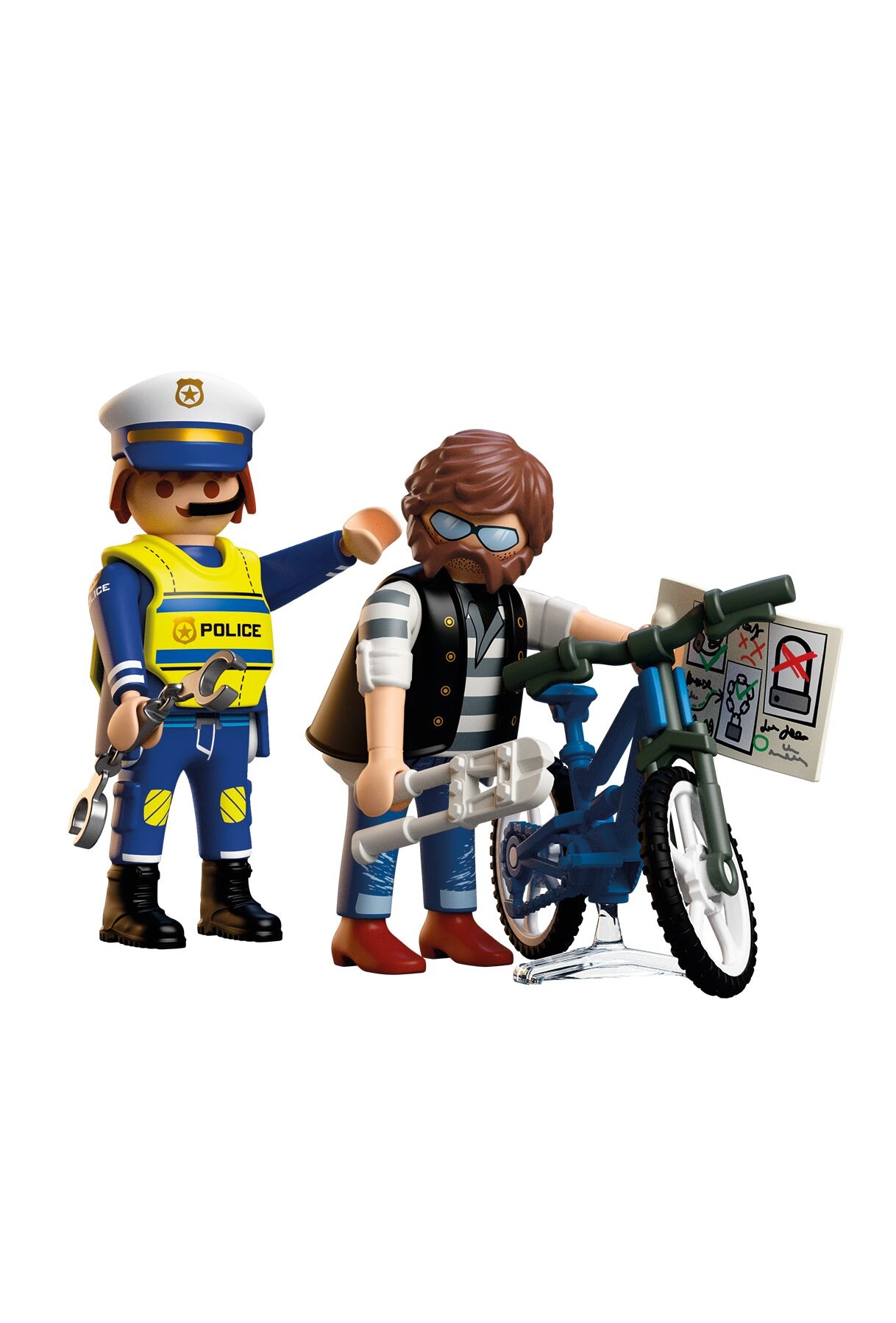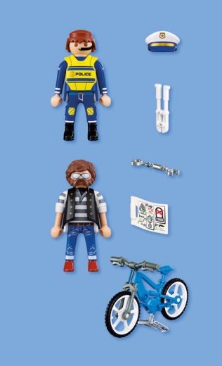 Grazie agli accessori pratici, come la casc o da poliziotto, la bici, le manette/lucchetto per bici, le tronchesi e la mappa, i bambini allenano la motricità fine e imparano i principi base di sicurezza e giustizia. La confezione compatta è perfetta anche in viaggio.