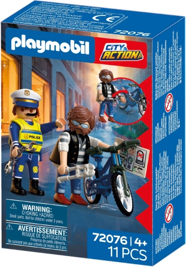 Il set Playmobil City Action – Furto della bici porta il brivido dell’azione direttamente nella cameretta. Due personaggi dettagliati – poliziotto e criminale – e ricchi accessori permettono ai bambini di inventare storie piene di inseguimenti, arresti e manovre ingegnose. Ideale come gioco autonomo o come espansione di altri set PLAYMOBIL.