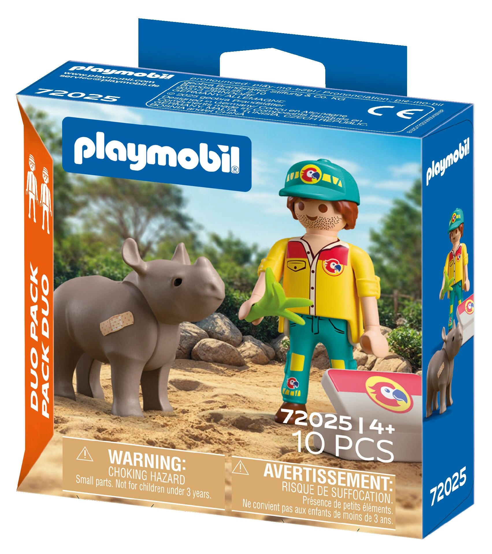 Scoprite il divertente set PLAYMOBIL Duo Pack, in cui i bambini diventano premurosi custodi e aiutano il rinoceronte a rimettersi in sesto grazie ad accessori realistici. Il set stimola il gioco creativo, l'empatia verso gli animali e amplia perfettamente il mondo Playmobil. Include la minifigure del custode, il rinoceronte e accessori medici per avventure ancora più autentiche.