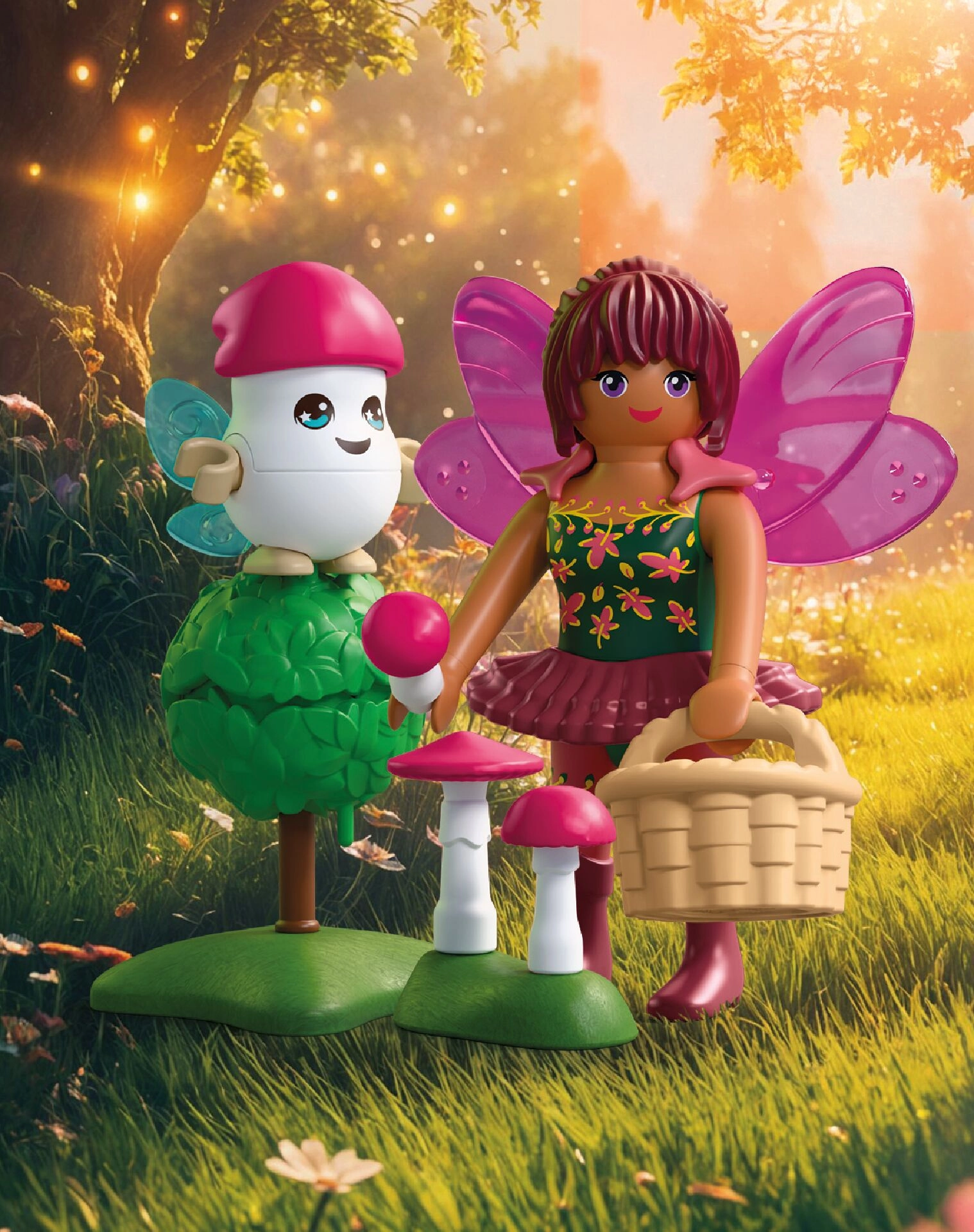 Lascia che i bambini entrino nel bosco fiabesco, dove la fata e il suo aiutante Joyling cercano funghi colorati e tesori nascosti. Grazie agli accessori dettagliati e alle parti mobili della figura, nascono storie piene di fantasia, gioia e magia.