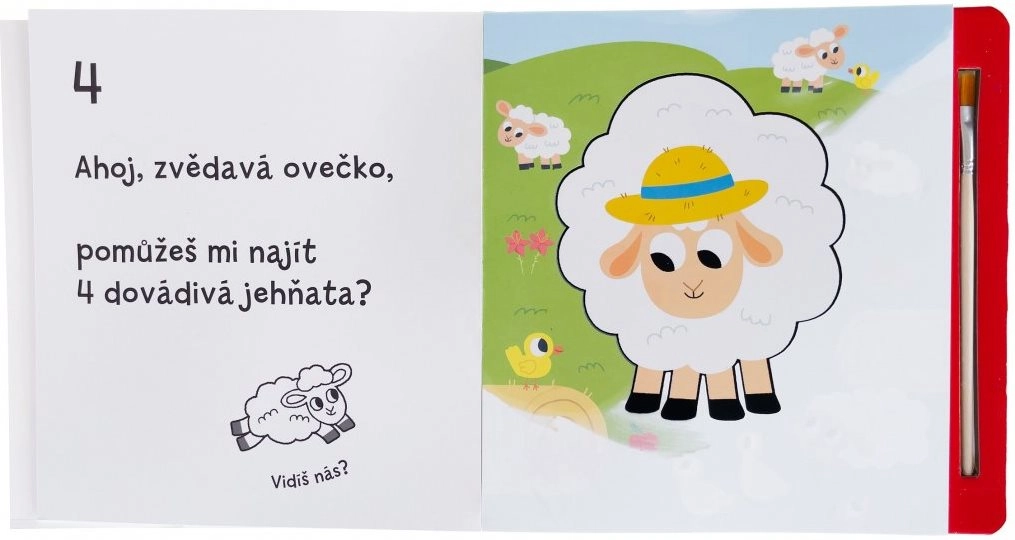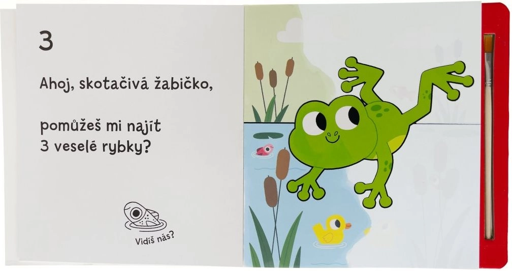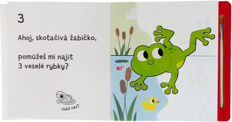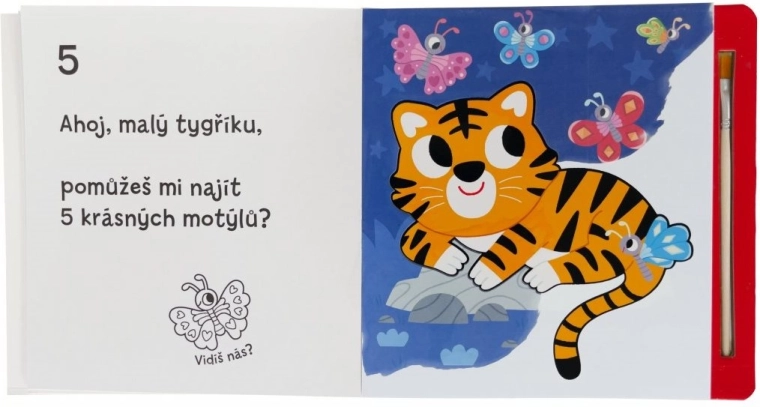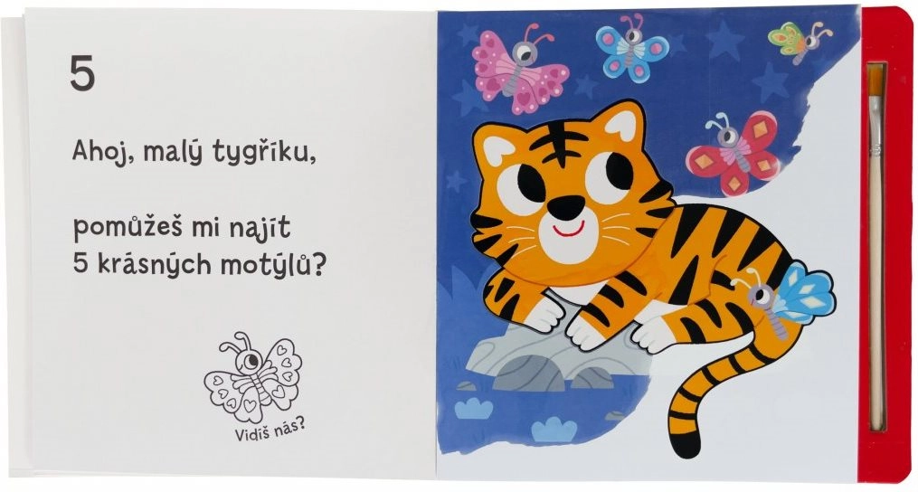 Ogni pagina nasconde nuove scenette con animaletti. Passando l’acqua, i colori appaiono immediatamente per poi svanire dopo un po’. Il libro diventa così un’attività ripetibile all’infinito che favorisce concentrazione, coordinazione occhio–mano e creatività.