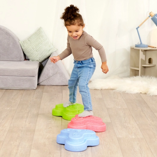 Ogni pietra pesa circa 120 g, eppure sostiene fino a 120 kg. La combinazione perfetta per saltare in sicurezza, allenare l’equilibrio e costruire.