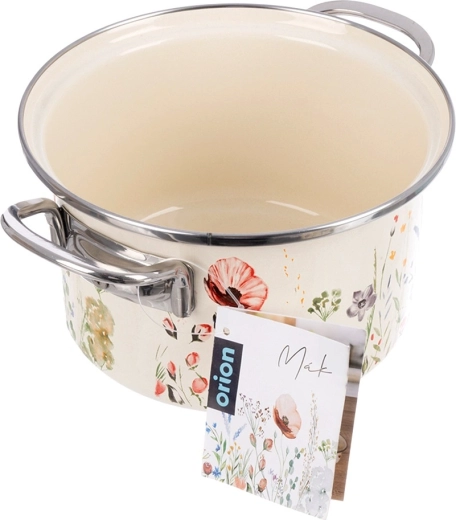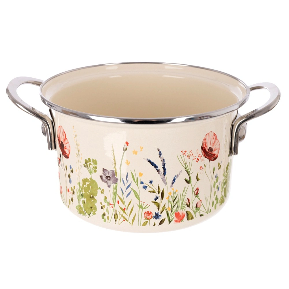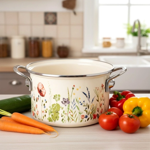 Scopri il fascino senza tempo del design retrò unito alla praticità. La pentola smaltata color crema con motivo di fiori di campo diventerà il punto forte di ogni cucina. Grazie all’acciaio smaltato di qualità, distribuisce perfettamente il calore, è resistente e facile da pulire. Il bordo in acciaio inox e le robuste maniglie laterali garantiscono una manipolazione sicura.