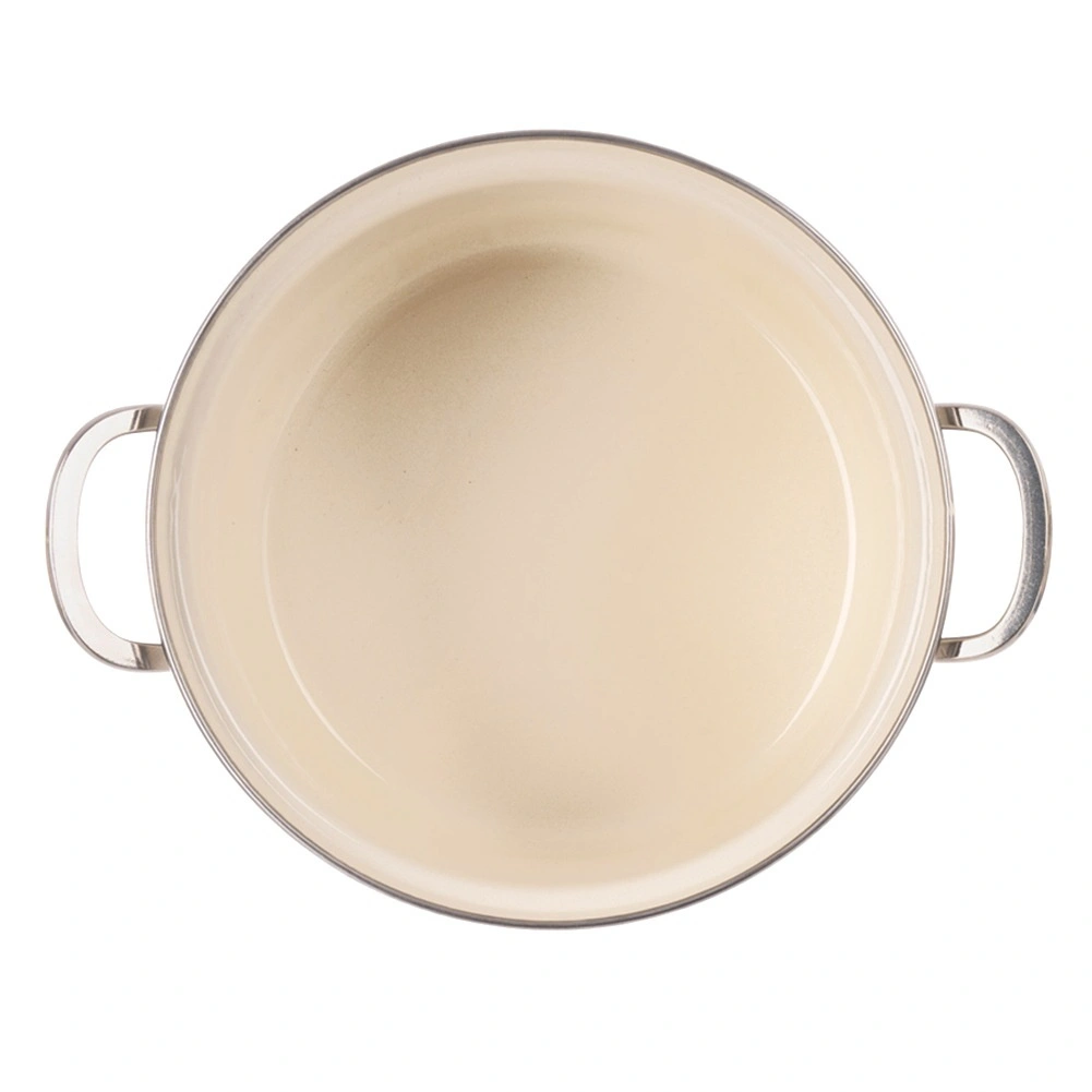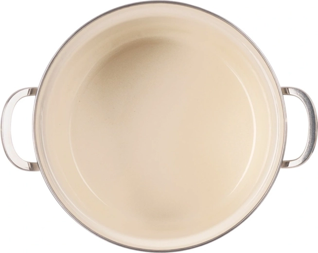 La superficie smaltata resistente è delicata sugli alimenti e sicura anche per gli allergici. Il bordo e le impugnature in acciaio inox aumentano la resistenza e facilitano la manipolazione.