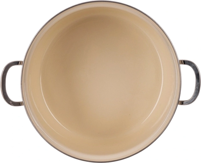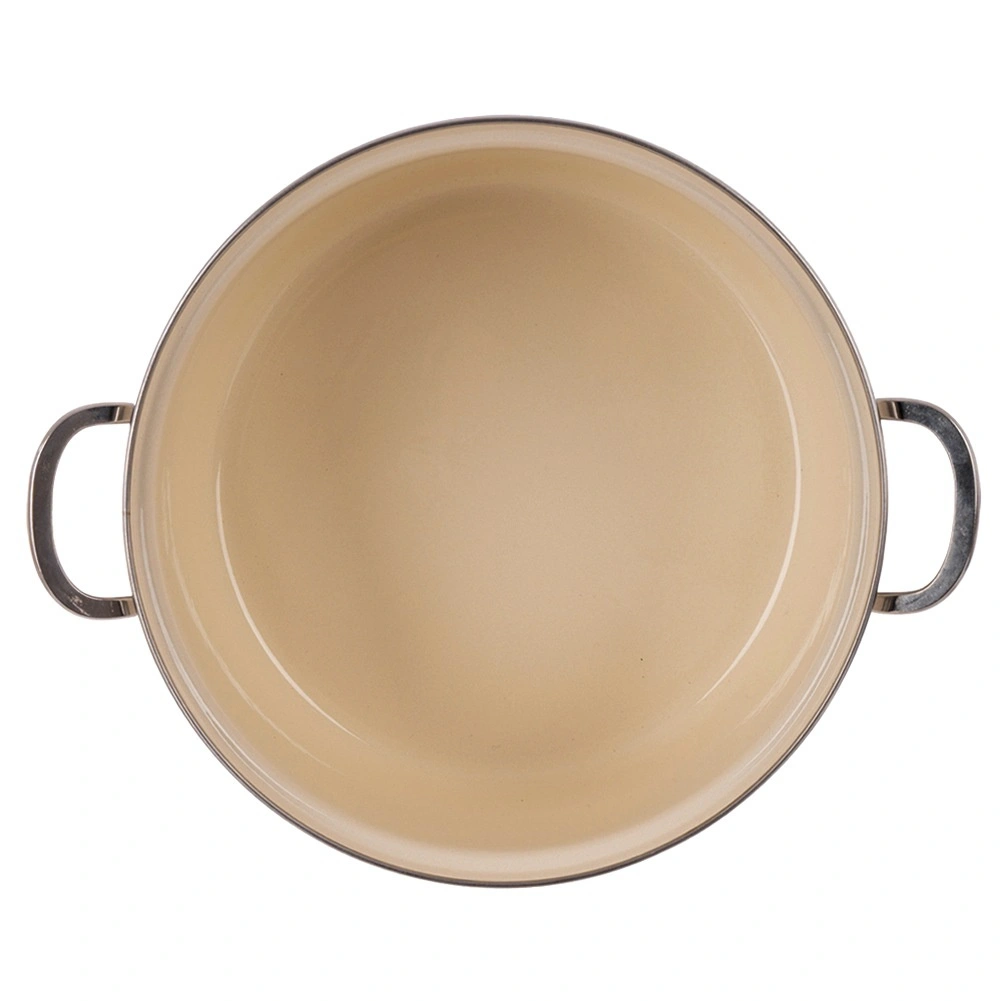 Lo smalto liscio è igienico e facile da pulire, il bordo in acciaio inox e i manici robusti garantiscono stabilità e lunga durata.