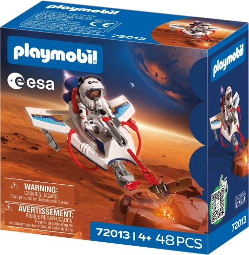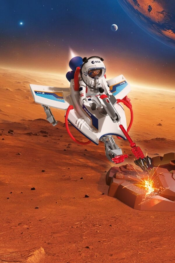Parti per una straordinaria spedizione su Marte! L’aliante aerodinamico PLAYMOBIL manovra a bassa quota sopra la superficie del pianeta, scansiona il terreno e, grazie al braccio prensile rotante, raccoglie preziosi campioni. Con il lanciatore puoi “spaccare” le formazioni rocciose e rivelare tesori luminosi nascosti, stimolando l’immaginazione e il gioco creativo dei bambini.