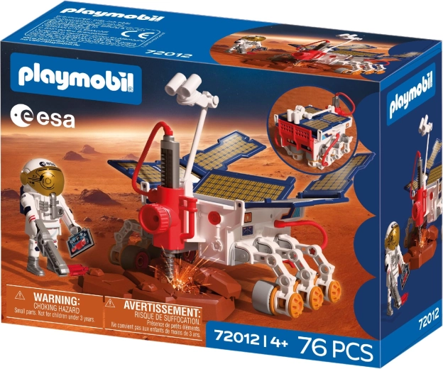 Esplora il Pianeta Rosso con il set realistico PLAYMOBIL sviluppato in collaborazione con la Agenzia Spaziale Europea (ESA). Il robusto rover marziano con modulo di perforazione, telecamere, sensori e pannelli solari ribaltabili permette ai bambini di esplorare il terreno, raccogliere campioni e vivere un’autentica spedizione scientifica. Parti mobili e accessori funzionali favoriscono il gioco di ruolo creativo e lo sviluppo dell’immaginazione.