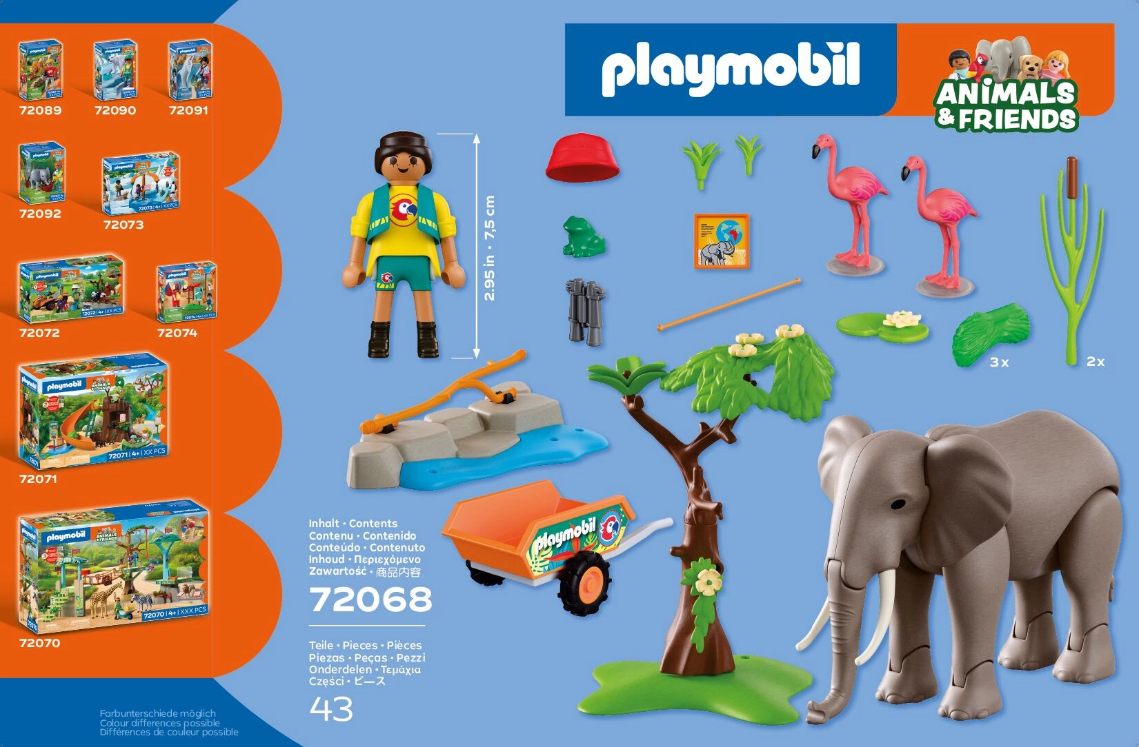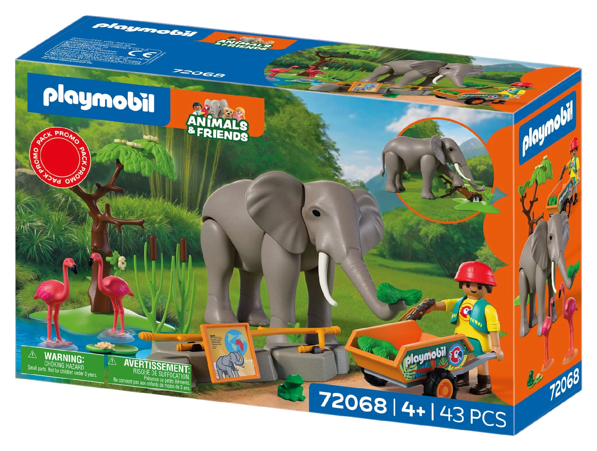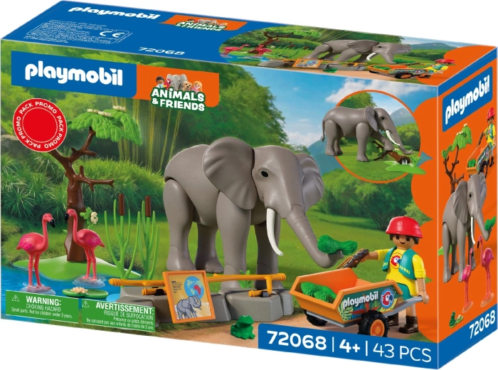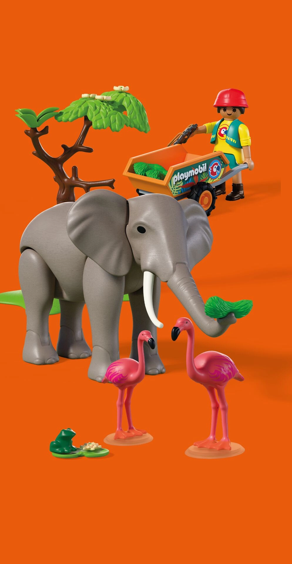 Scopri il giocoso mondo dello ZOO con il set PLAYMOBIL Animals & Friends, dove il maestoso elefante vive in un recinto con fenicotteri e una piccola ranocchia. L’elefante snodabile può muovere le zampe, afferrare il cibo con la proboscide e persino abbattere un albero, aggiungendo realismo e suspense al gioco. La guardiana trasporta cibo fresco su un carrellino e osserva gli animali con il binocolo. Non mancano una vasca d’acqua, vegetazione e numerosi accessori per storie senza fine.