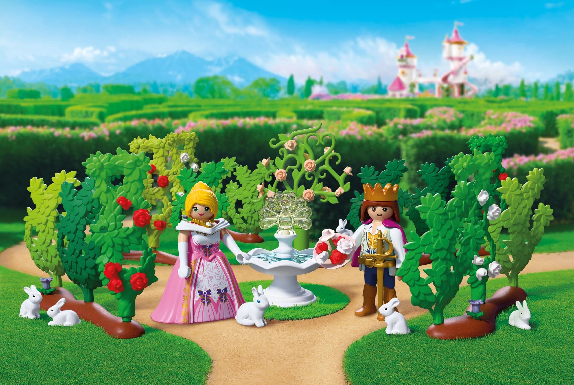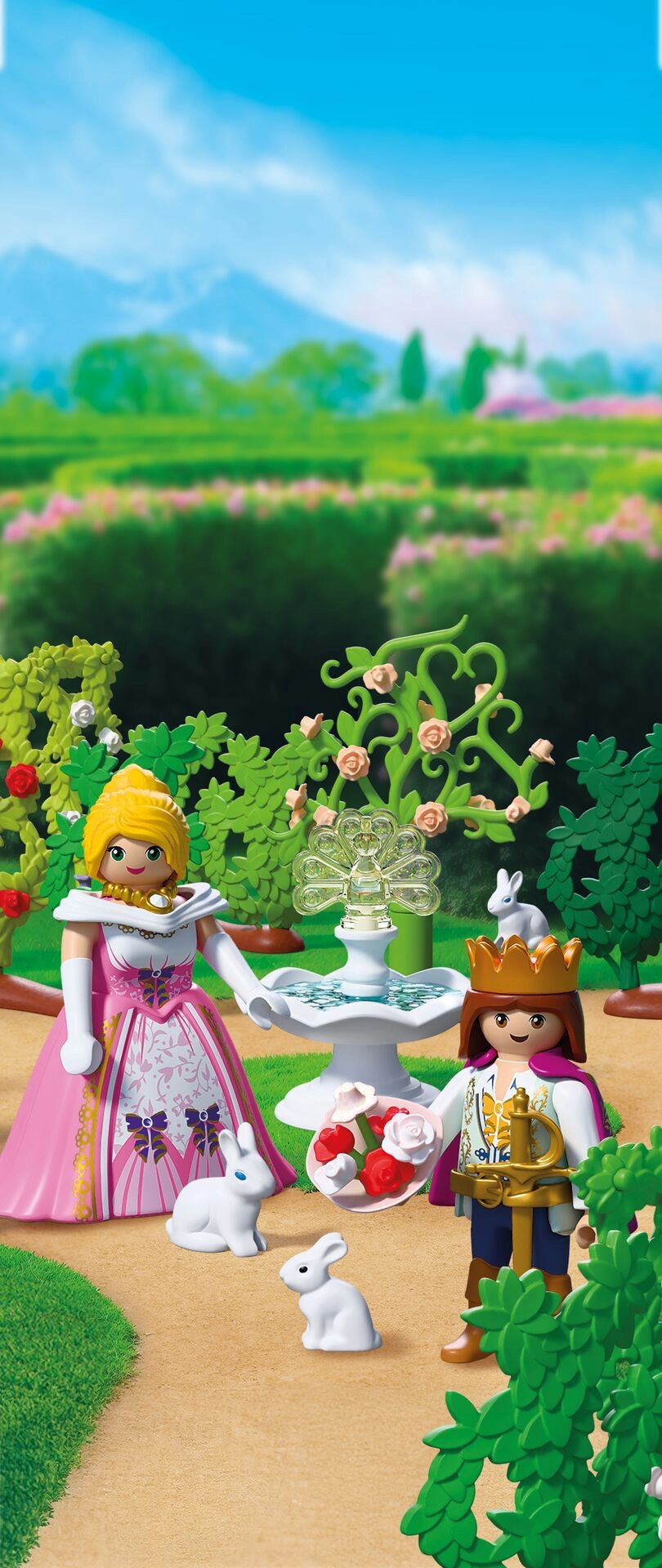 Preparatevi a un incontro romantico nel cuore del parco del palazzo. Il principe si avventura tra i vicoli tortuosi del labirinto vivente, continuamente riconfigurabile, e raggiunge la principessa con un bouquet di fiori. L’ambiente prende vita grazie a teneri coniglietti, al profumo di rose e all’imponente fontana del pavone, che dona all’intera scena un’atmosfera fiabesca.