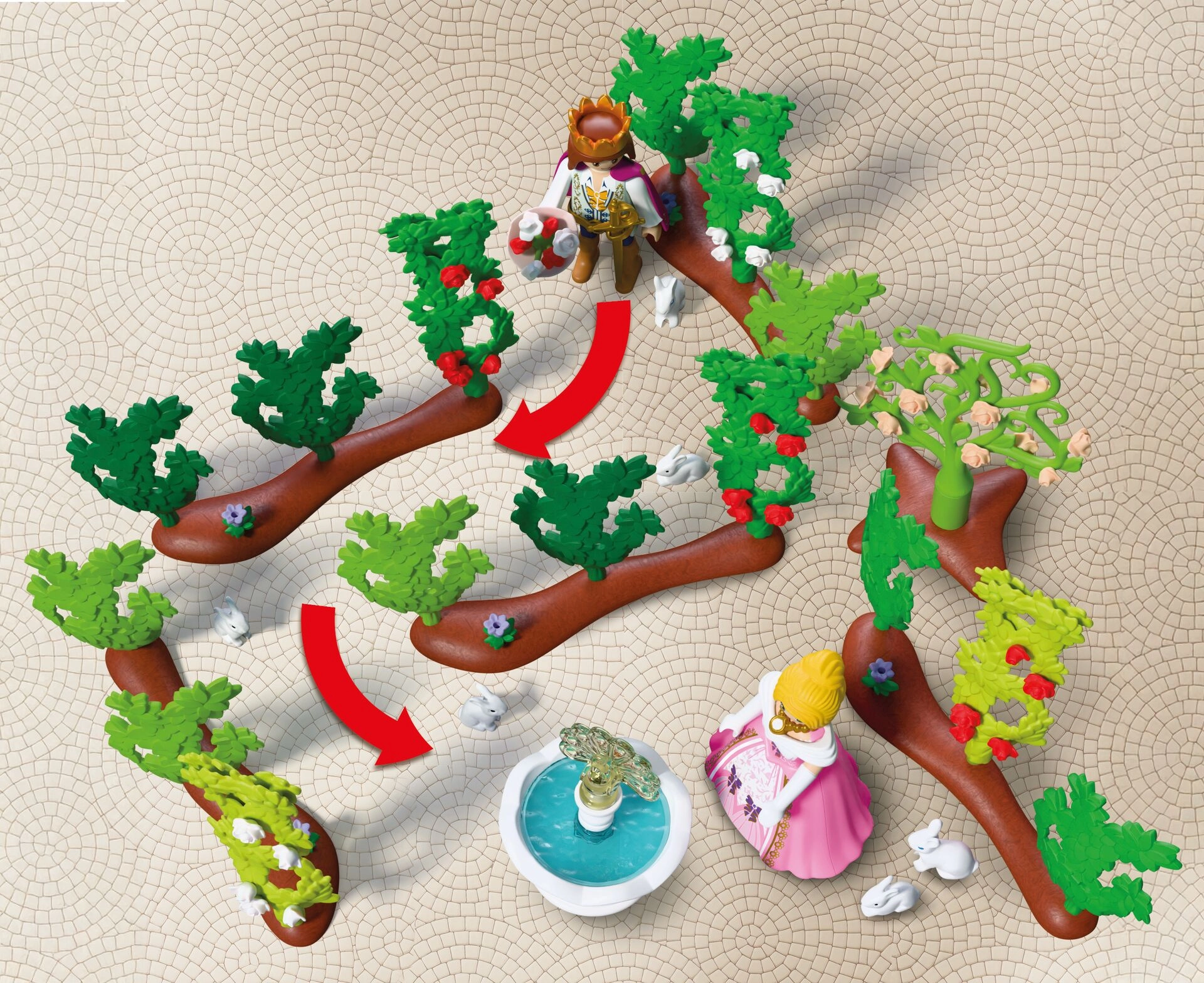 I bambini possono spostare siepi e fiori, combinare gli elementi delle siepi vive e delle piante rampicanti e creare sempre nuovi percorsi. Il set supporta al meglio creatività, gioco narrativo e motricità fine. È compatibile con altri set PLAYMOBIL, così il mondo delle principesse si può ampliare con facilità.
