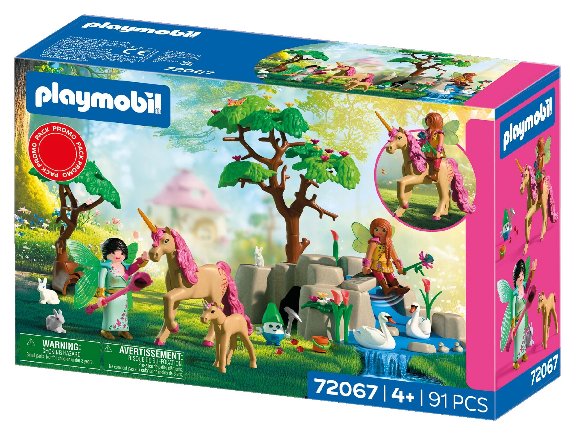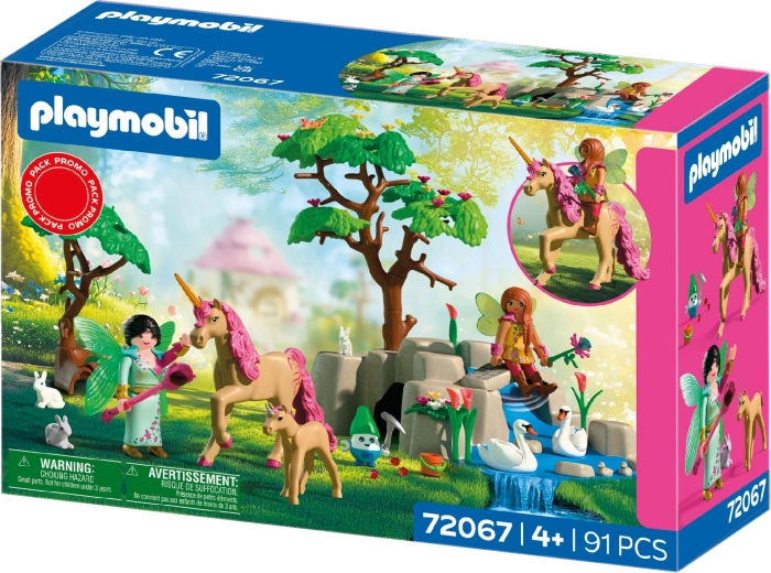 Le figure delle fate hanno parti mobili, ali applicabili e accessori alla moda. La scena con ponte, alberi e ruscello crea un’atmosfera magica per raccontare storie. Il set è compatibile con altri set PLAYMOBIL, così i bambini possono costruire il proprio mondo di avventure.