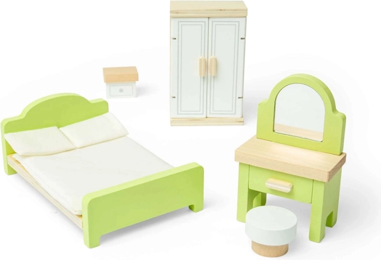 Crea un rifugio accogliente per le tue bambole con l'elegante set camera da letto in legno BIGJIGS TOYS. Il set include letto, armadio, comodino, toeletta e sgabello – tutto in legno FSC® di alta qualità. Sostiene fantasia, gioco di ruolo, empatia e l'imitazione dei riti serali. Grazie a ante e cassetti apribili e alla superficie liscia laccata, è ideale per il gioco quotidiano ed è compatibile con le case delle bambole BIGJIGS TOYS e altri modelli standard.