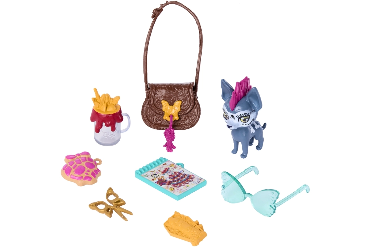 Il set include il dolce animaletto Candelita e sei accessori a tema – ad esempio borsetta, occhiali da sole, taccuino e bevanda. Con essi i bambini possono sviluppare la fantasia, combinare outfit e creare storie tra i corridoi della MONSTER HIGH.