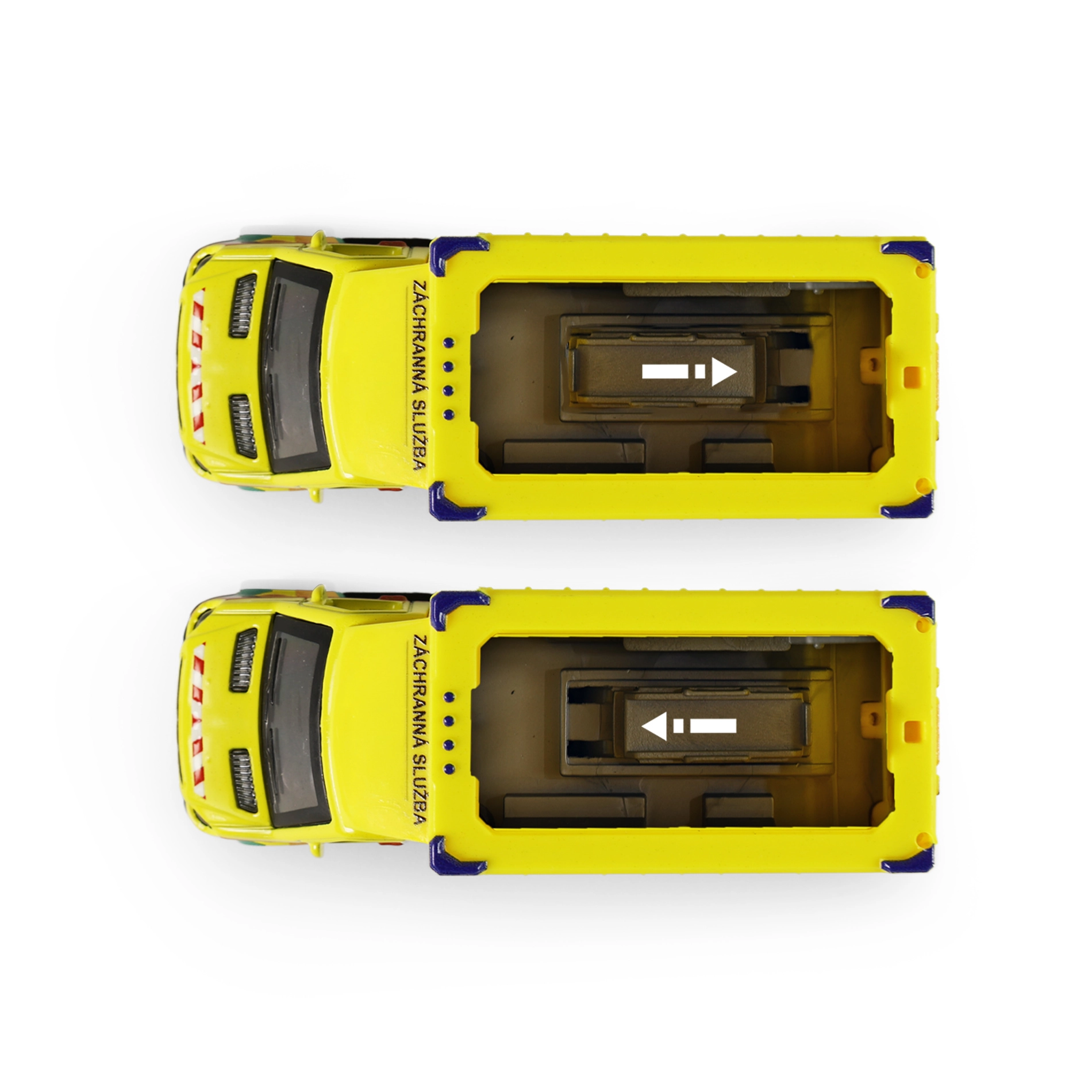 Grazie al meccanismo a retrocarica l’ambulanza parte facilmente: ideale per interventi rapidi nei giochi dei bambini. Il design ufficiale ispirato al Servizio di Soccorso Sanitario della Città di Praga dona al giocattolo un aspetto fedele.