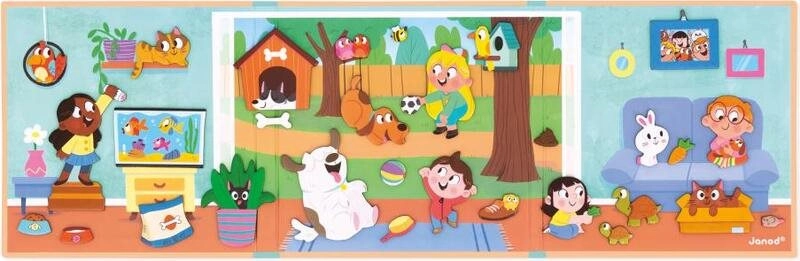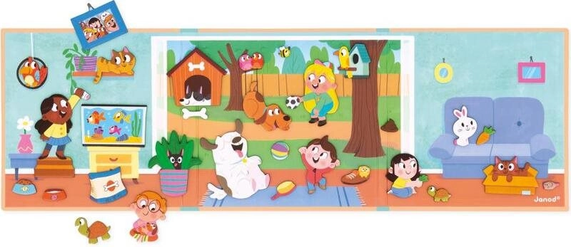 Scoprite la magia del racconto con il libro magnetico JANOD Animali domestici. Grazie al grande sfondo magnetico e a 30 magneti colorati, i bambini compongono le proprie scene con gli animaletti, allenano l’immaginazione e arricchiscono il vocabolario. Il libro si apre facilmente, è sottile e leggero: il compagno ideale per i viaggi e per il gioco a casa.