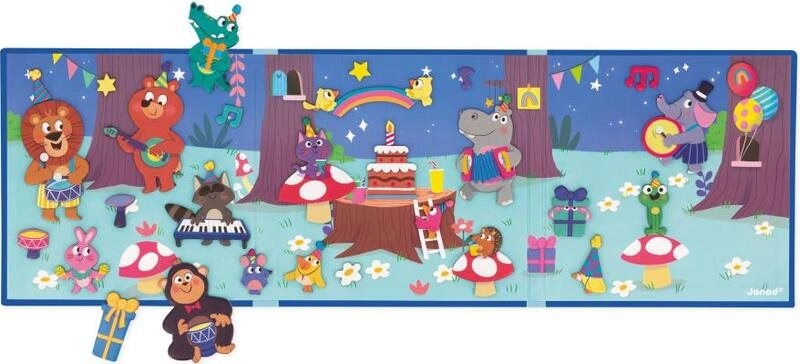 Scopri il mondo del divertimento di compleanno con il libro magnetico JANOD, che permette ai bambini di creare innumerevoli scene e storie. Grazie al solido sfondo magnetico e a 30 magneti colorati con animaletti, il gioco è semplice, intuitivo e altamente creativo.