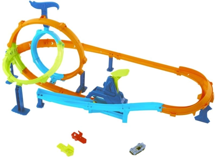 Questa pista d’azione è progettata per il massimo divertimento e sfide emozionanti. Grazie al doppio looping e al lancio rapido delle macchinine, i modellini sfrecciano lungo il tracciato a velocità fulminea puntando dritto verso zone ricche di impatti ed effetti. Ideale per i bambini che amano il gioco dinamico e la competizione.