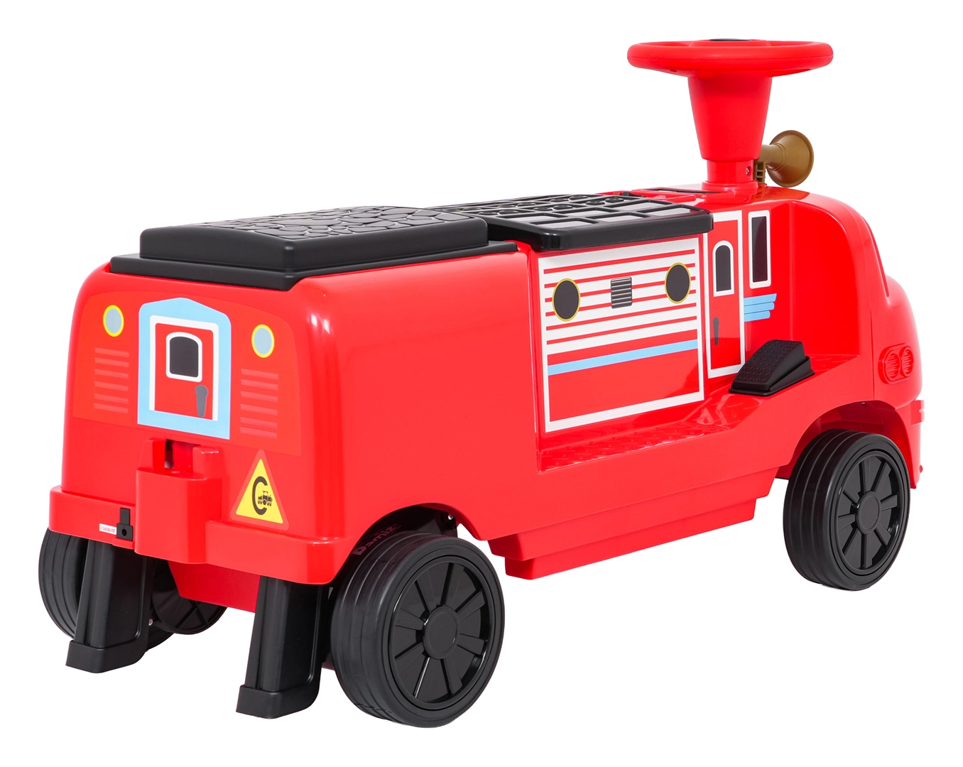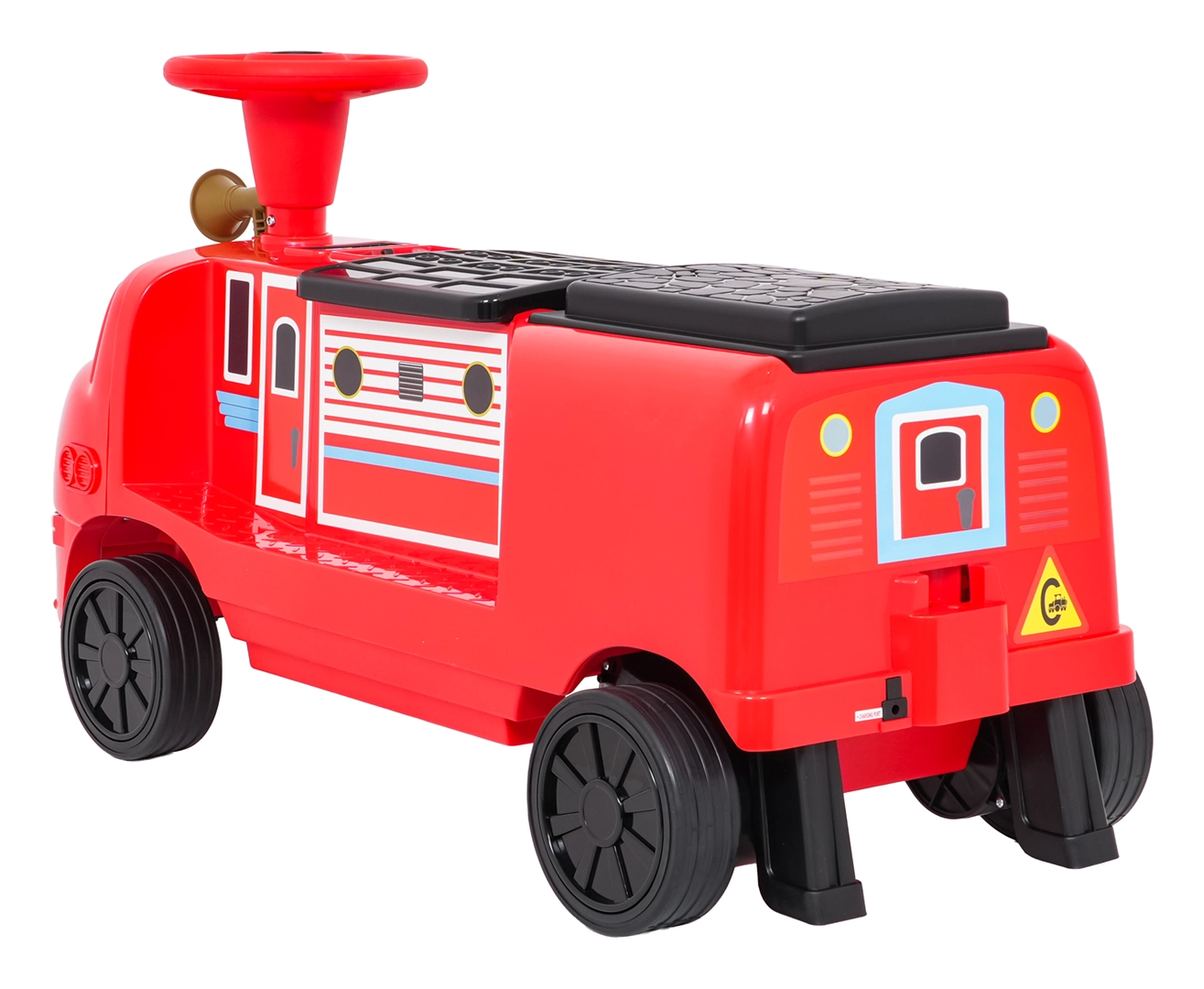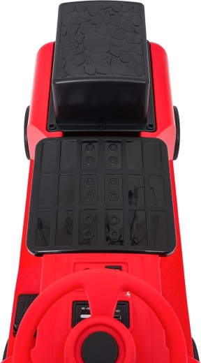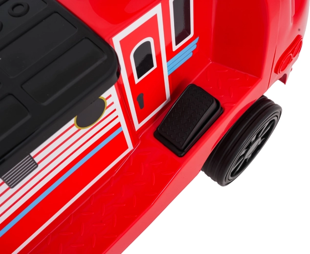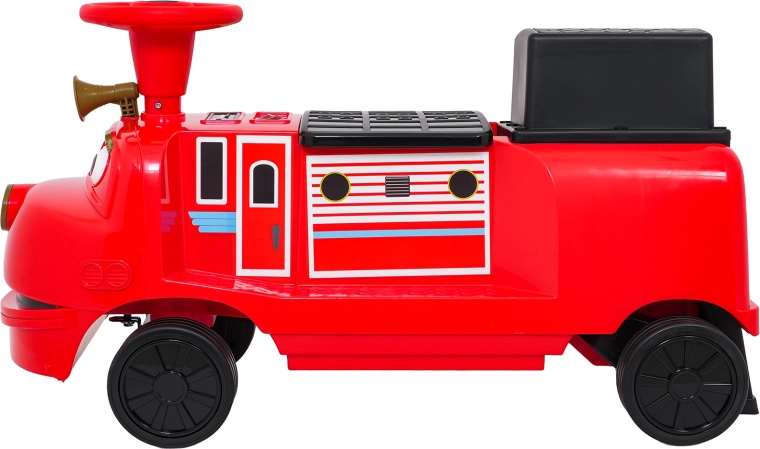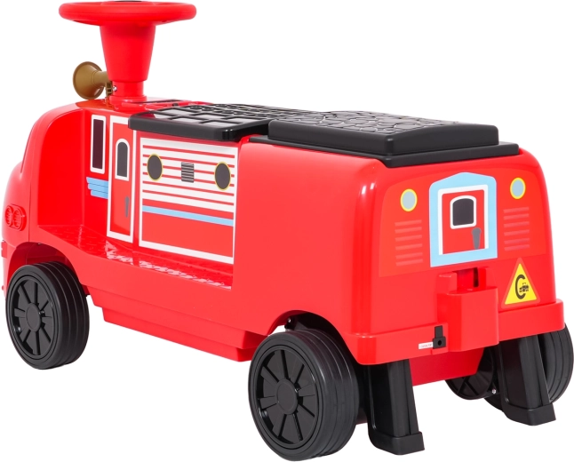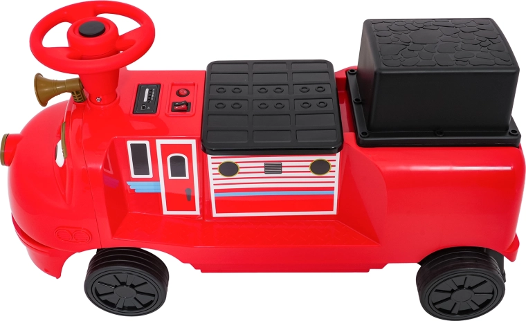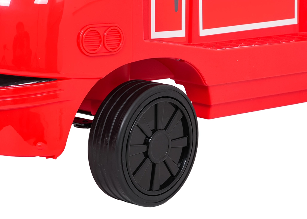Questa locomotiva per bambini dal design ispirato ai treni dei pompieri unisce la stabilità di un monopattino senza pedali ai vantaggi della trazione elettrica. Due motori 2×35 W e batteria 12 V/7 Ah offrono potenza sufficiente per muoversi sul marciapiede e in casa. Le ruote in gomma assicurano ottima aderenza e funzionamento silenzioso, mentre la partenza dolce evita strattoni all’avvio.