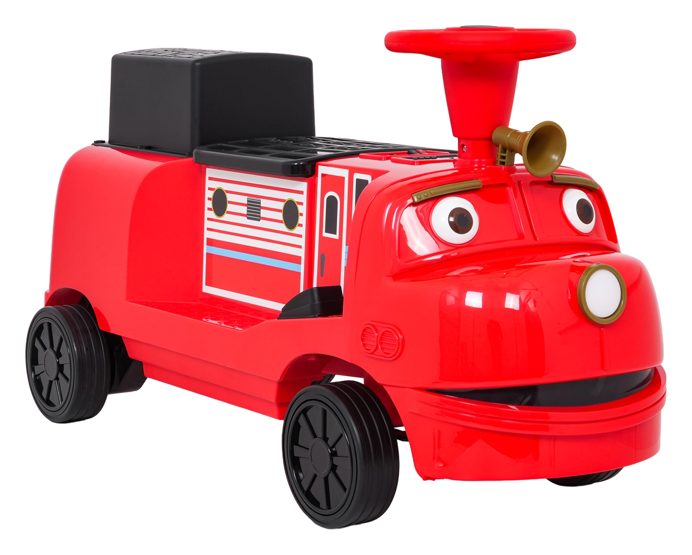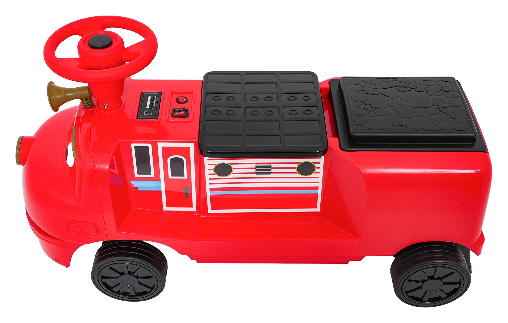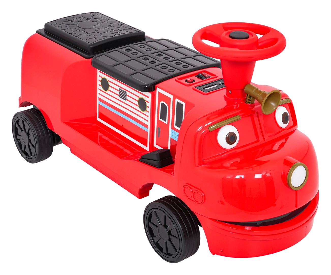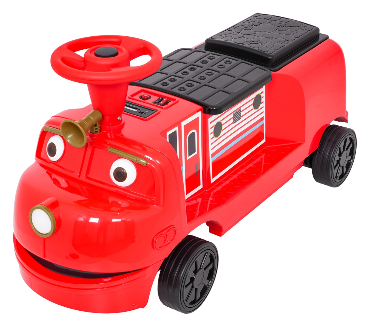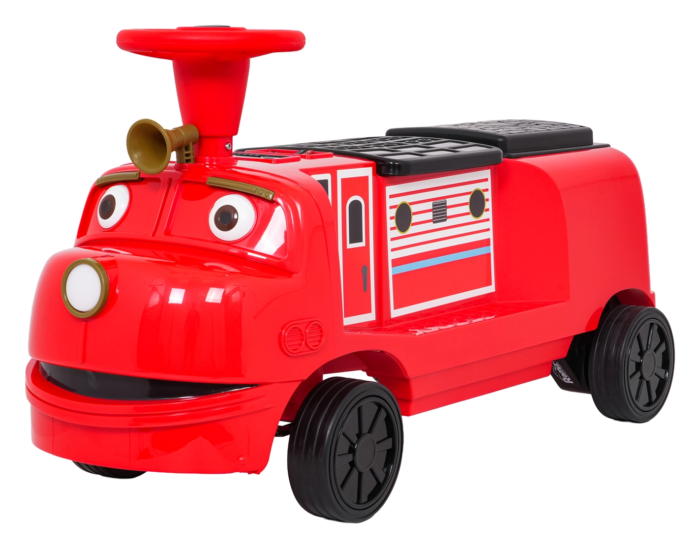 Questa locomotiva per bambini dal design ispirato ai treni dei pompieri unisce la stabilità di un monopattino senza pedali ai vantaggi della trazione elettrica. Due motori 2×35 W e batteria 12 V/7 Ah offrono potenza sufficiente per muoversi sul marciapiede e in casa. Le ruote in gomma assicurano ottima aderenza e funzionamento silenzioso, mentre la partenza dolce evita strattoni all’avvio.