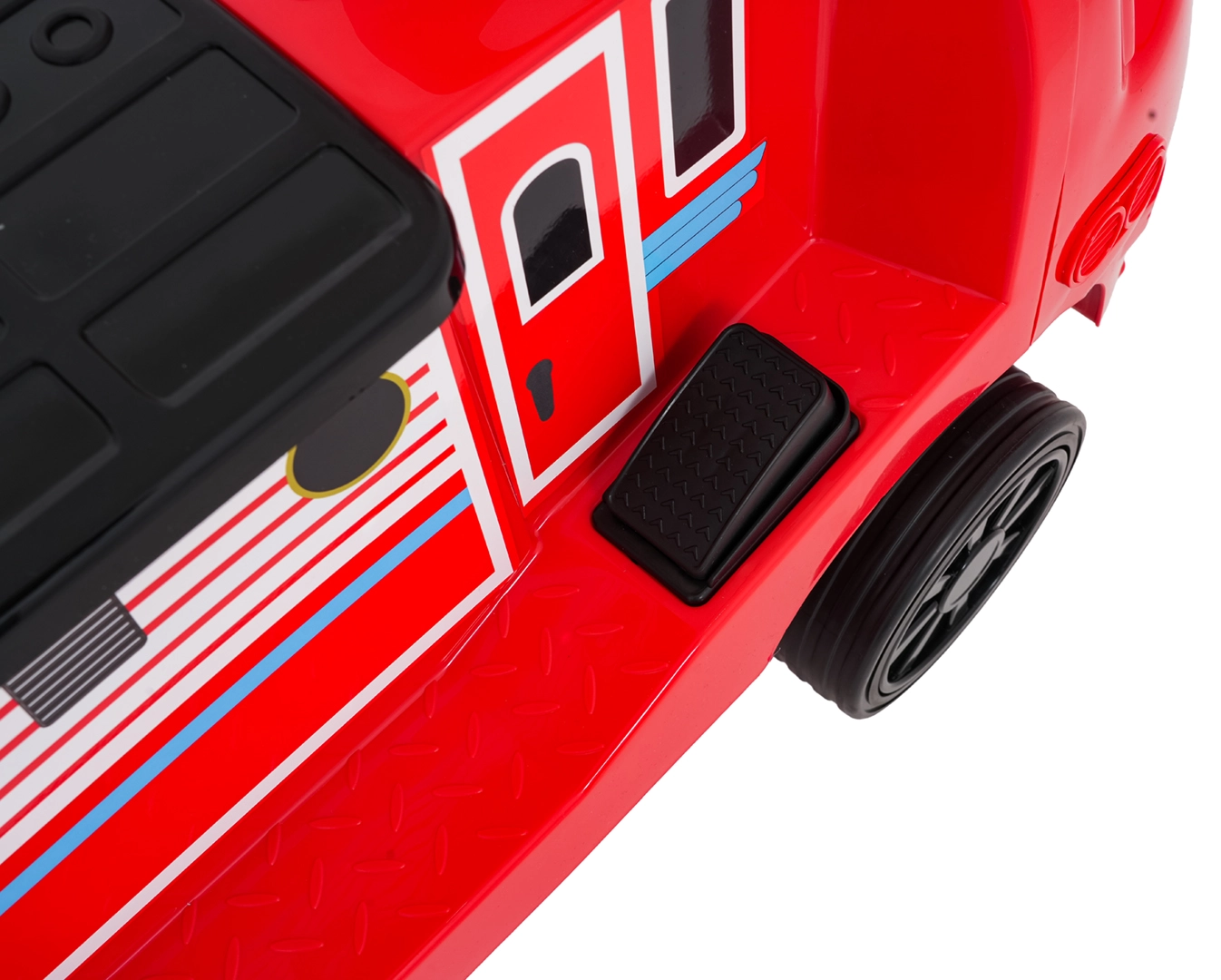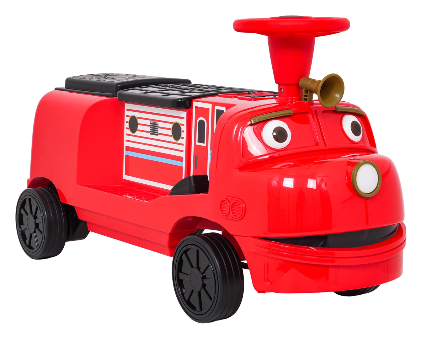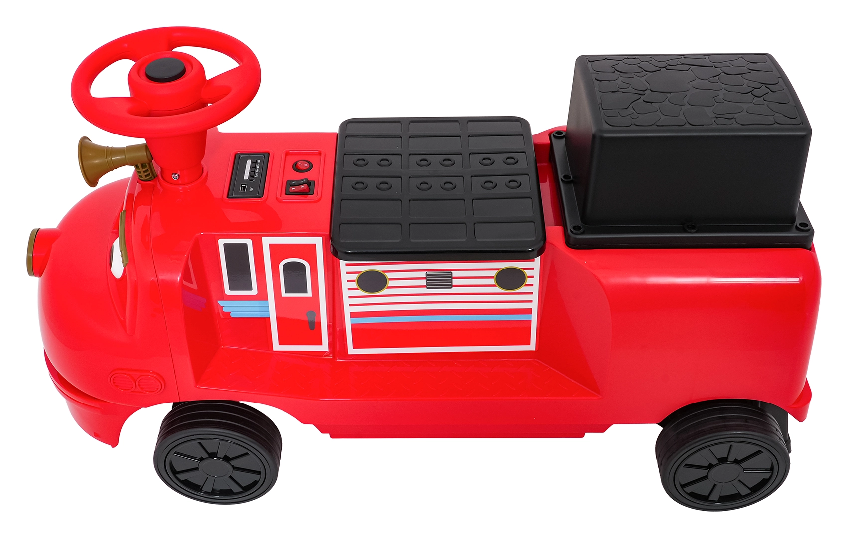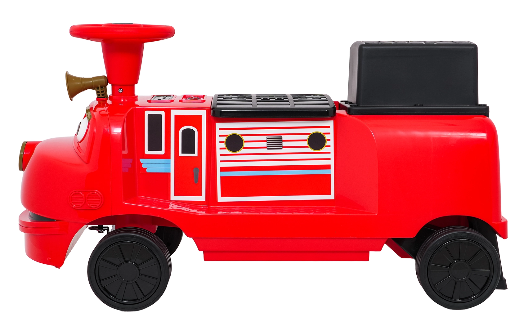 Questa locomotiva per bambini dal design ispirato ai treni dei pompieri unisce la stabilità di un monopattino senza pedali ai vantaggi della trazione elettrica. Due motori 2×35 W e batteria 12 V/7 Ah offrono potenza sufficiente per muoversi sul marciapiede e in casa. Le ruote in gomma assicurano ottima aderenza e funzionamento silenzioso, mentre la partenza dolce evita strattoni all’avvio.
