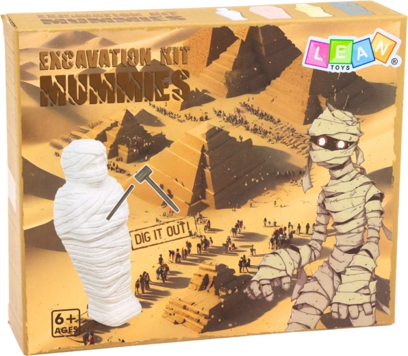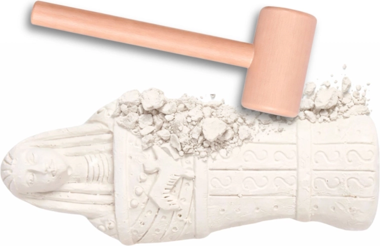 Preparatevi a piccoli scavi domestici! Il bambino diventa un giovane archeologo e rimuove gradualmente il gesso ammorbidito per rivelare la figurina egizia nascosta. Il gioco favorisce concentrazione, coordinazione mano-occhio e interesse per la storia. Una volta scoperta, basta sciacquare la scoperta con acqua e sarà pronta da esporre o per ulteriori esplorazioni.