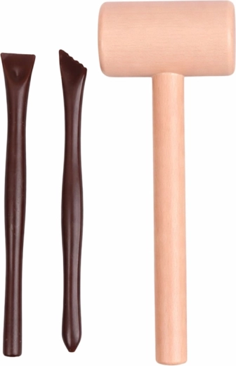 Il martelletto, lo scalpello e il pennellino in legno per bambini sviluppano la motricità fine e la precisione. Ideali per un divertimento sicuro a casa.