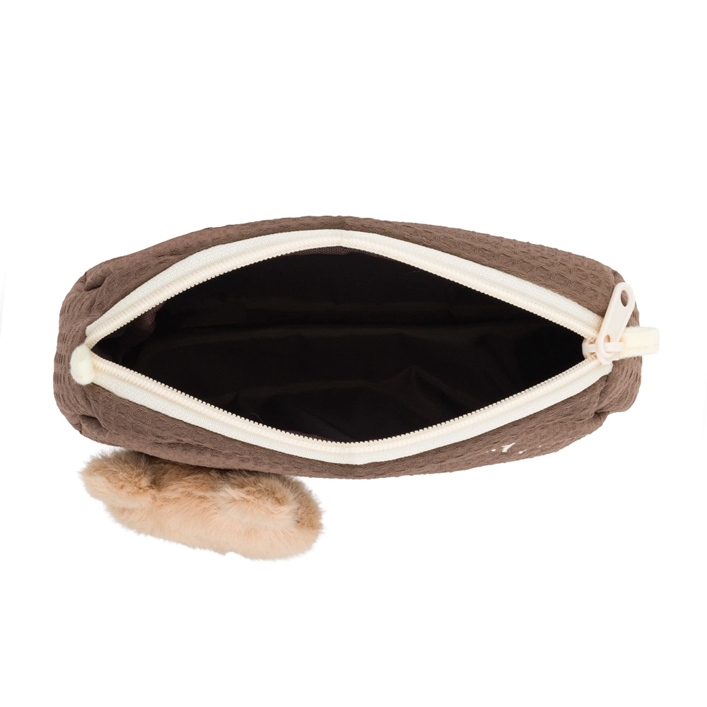 Questo simpatico astuccio a forma di orsetto marrone porta tanta allegria nel disegno e a scuola. La testolina in peluche funge da piccolo compagno da coccolare, mentre il tessuto a nido d’ape è piacevole al tatto e pratico per l’uso quotidiano. All’interno troverai una fodera in poliestere resistente che protegge il contenuto dai graffi e mantiene l’astuccio come nuovo più a lungo.