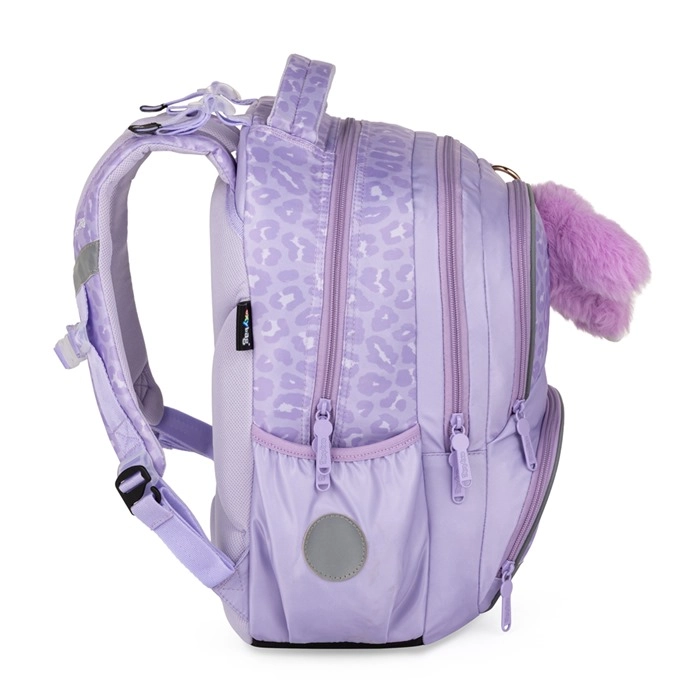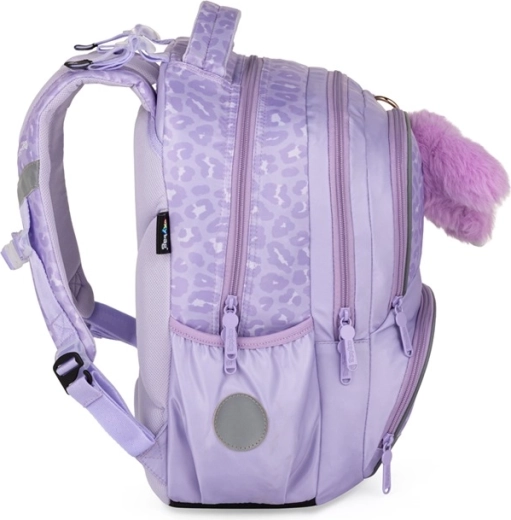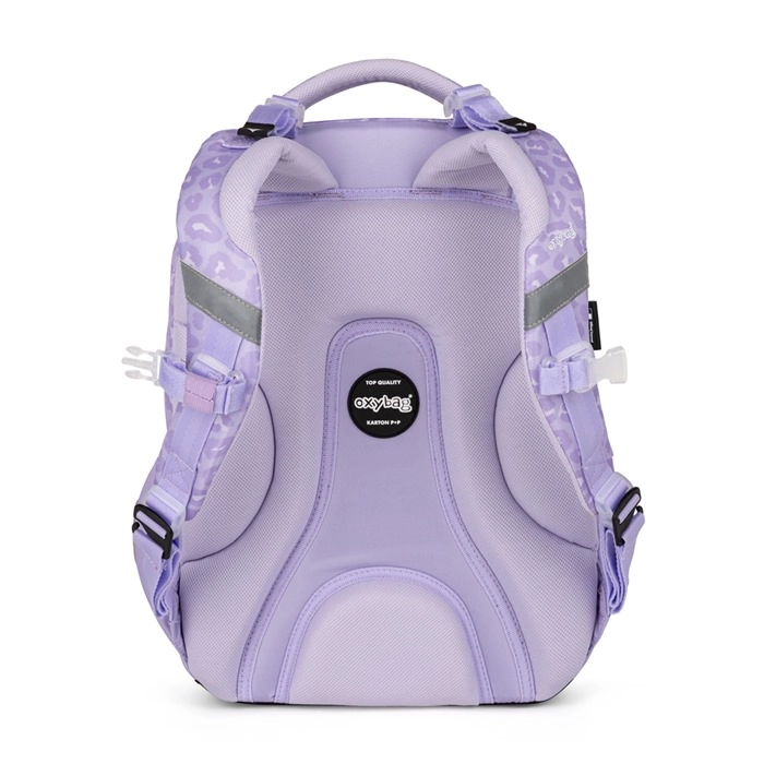 Pratico set scolastico in tre pezzi OXY NEXT Bunny in delicato color lavanda, che combina uno zaino capiente, un grande astuccio e una leggera sacca per la ginnastica. Lo zaino ha schienale anatomico, spallacci imbottiti e cinturino pettorale per un trasporto comodo e salutare. Offre tante tasche e organizer, tasche laterali per la bottiglia, portachiavi/chip e elementi riflettenti per la sicurezza. Il fondo impermeabile rinforzato protegge il contenuto anche in caso di maltempo.