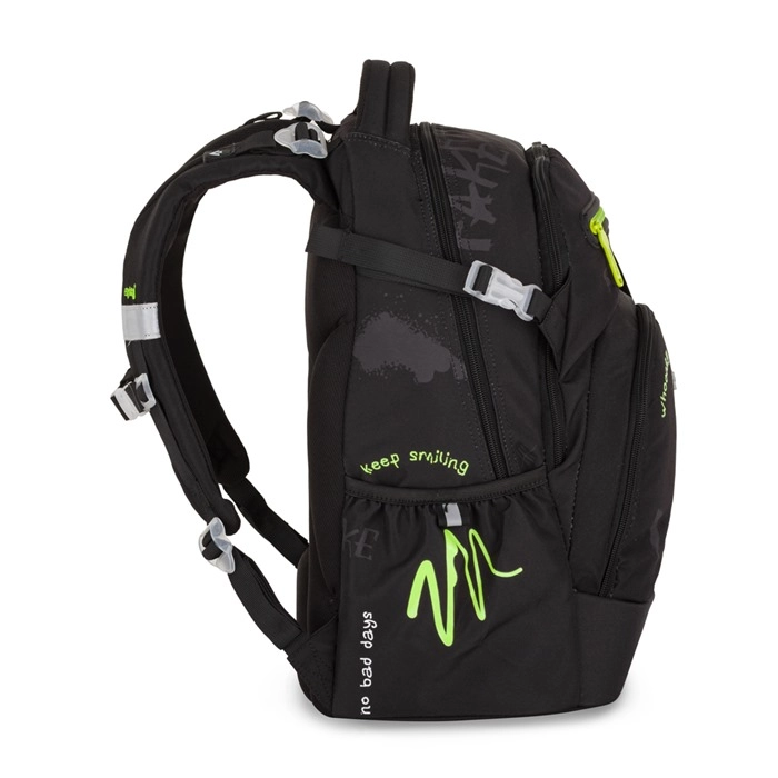 Lo zaino scolastico OXY Ombre Rebel è progettato per studenti dalla 3ª classe e altezza a partire da 136 cm. Grazie al pannello posteriore anatomico e alla morbida imbottitura degli spallacci offre comfort per tutto il giorno e una postura sana. Il cinturino pettorale regolabile mantiene lo zaino stabile anche durante la corsa o in bicicletta.