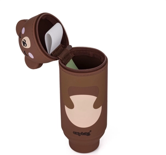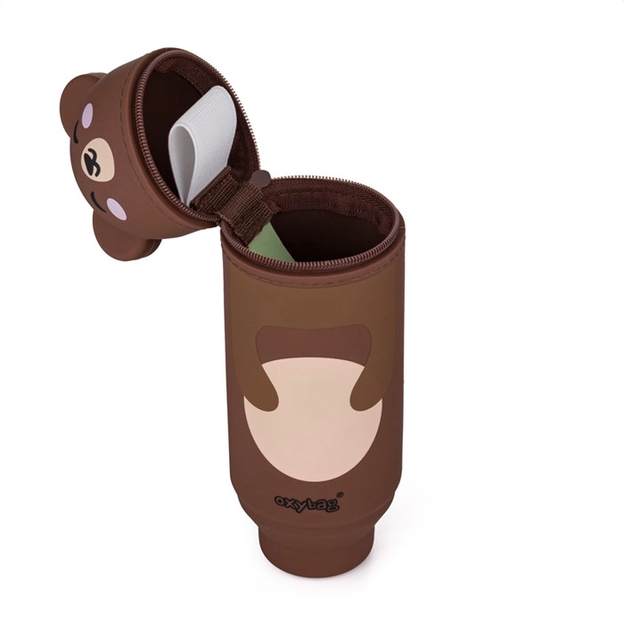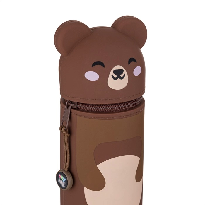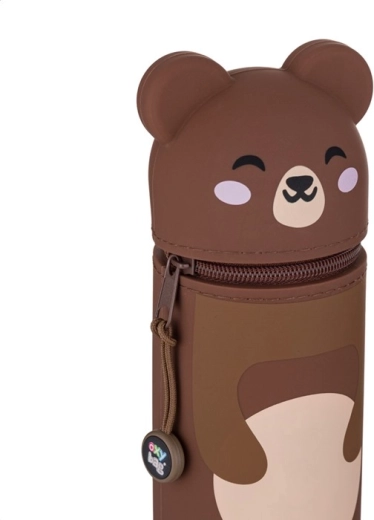 Dolcissimo astuccio in silicone a forma di orsetto, che piacerà a ogni studente. Grazie alle orecchiette 3D sembra un piccolo amico di banco, è realizzato in un materiale piacevole e leggero e si pulisce facilmente. All’interno trovi un passante per la gomma e un’unica capiente tasca con cerniera per pastelli, penne e piccoli oggetti. Magia in più: basta premere delicatamente e si trasforma subito in un portamatite da tavolo che resta stabile sulla scrivania.
