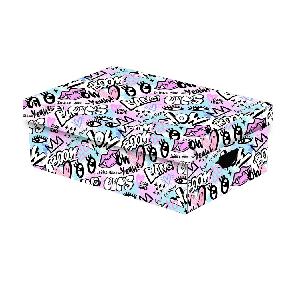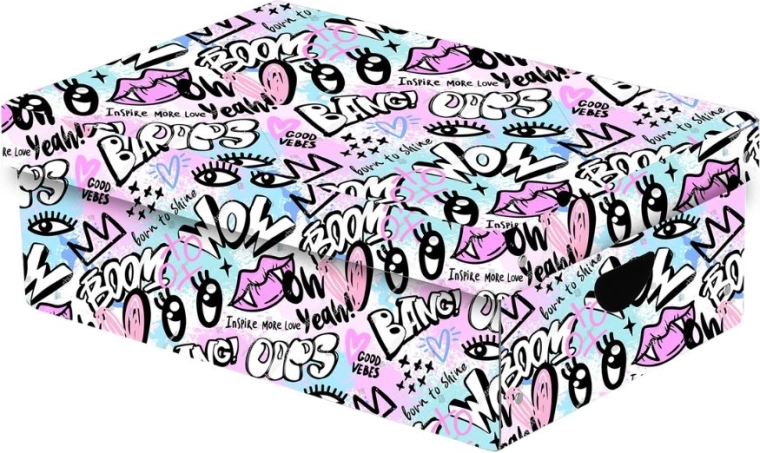Mantieni l’ordine con una spaziosa scatola in laminato resistente, che protegge i tuoi oggetti da polvere e danni. Grazie ai pratici fori per le maniglie, la puoi trasportare facilmente ovunque ti serva. Il design "Funny Girl" dona al tuo interno un tocco giocoso e moderno.