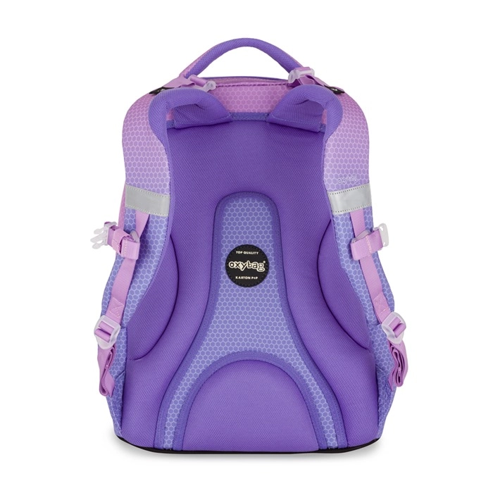 Lo zaino scolastico OXY Ombre in rosa‑viola è ideale per gli alunni dalla 3ª classe. Offre schienale anatomico, spallacci imbottiti e cinturino pettorale regolabile per un trasporto confortevole. Grazie al fondo rigido resta stabile in piedi, dispone di due ampi scomparti, tasche laterali per la borraccia, tasca frontale per la merenda e elementi riflettenti per una maggiore sicurezza.