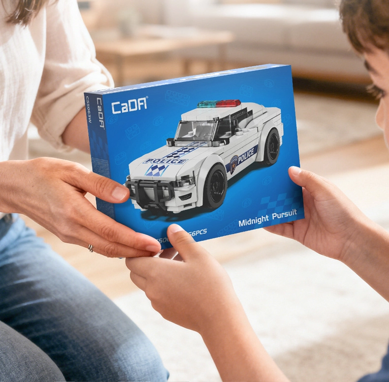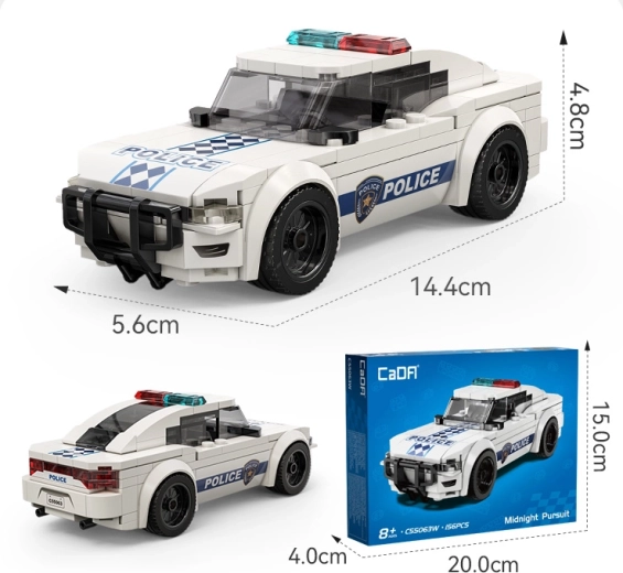 Il modello Midnight Pursuit si distingue per le linee pulite, l'aspetto sportivo e i piccoli dettagli che sottolineano il carattere da pattuglia. Una volta montato, otterrai un modello statico con ruote girevoli, perfetto sia per il gioco sia come elegante decorazione da scaffale.