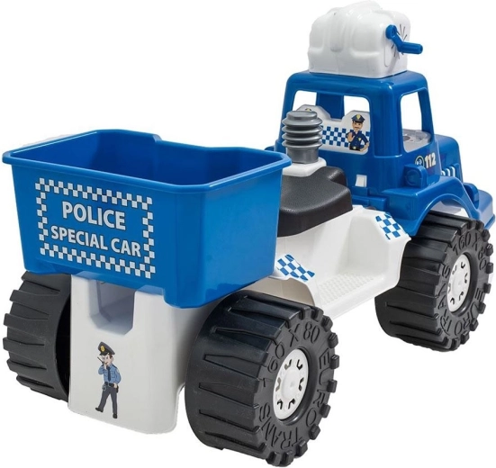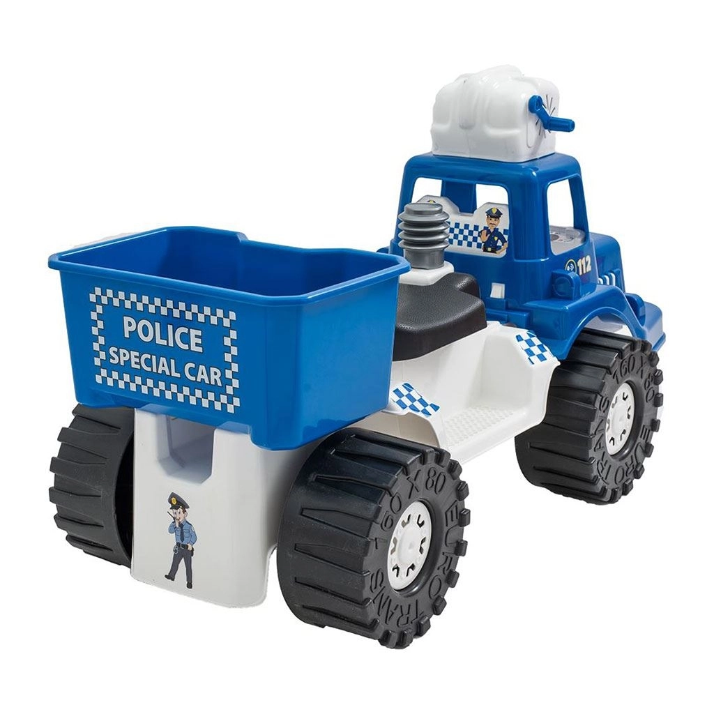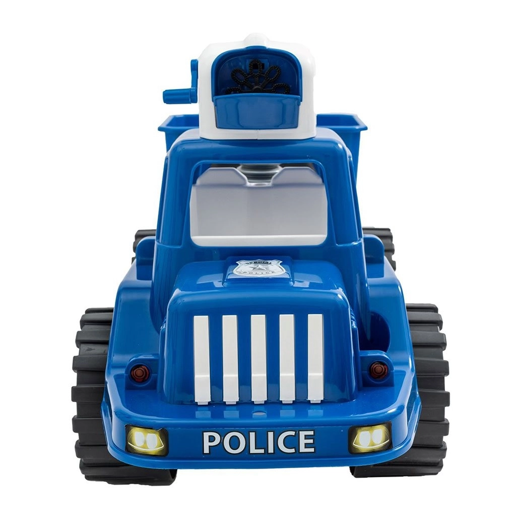 Sotto il sedile c’è un pratico box per i giocattoli o la soluzione per le bolle, così il piccolo poliziotto avrà tutto a portata di mano anche durante le uscite più lunghe.