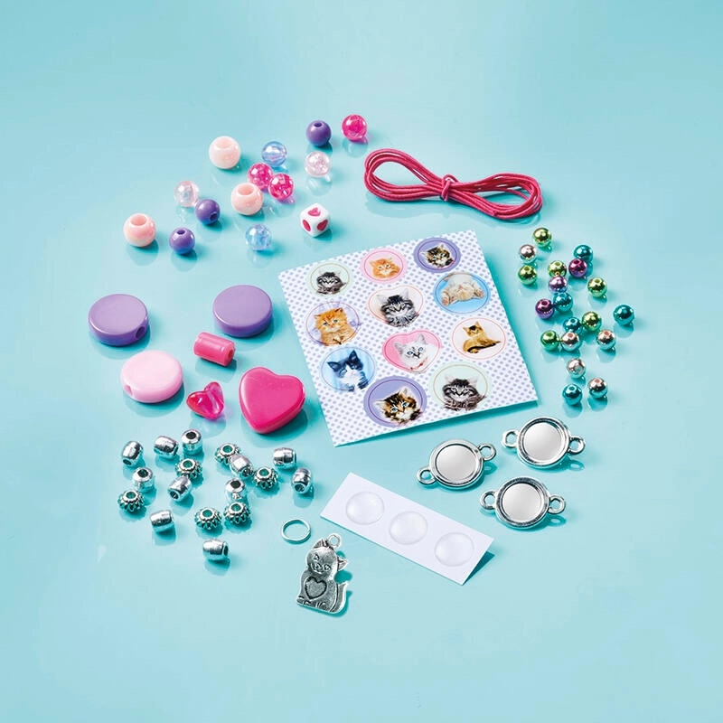 Scopri un divertente mondo creativo a tema gatti. Il set Cutie Cats permette ai bambini di progettare e assemblare i propri gioielli – ciondoli e braccialetti – esattamente come li immaginano. Grazie agli adesivi e alle perline inclusi, nasceranno accessori originali di cui si innamoreranno.