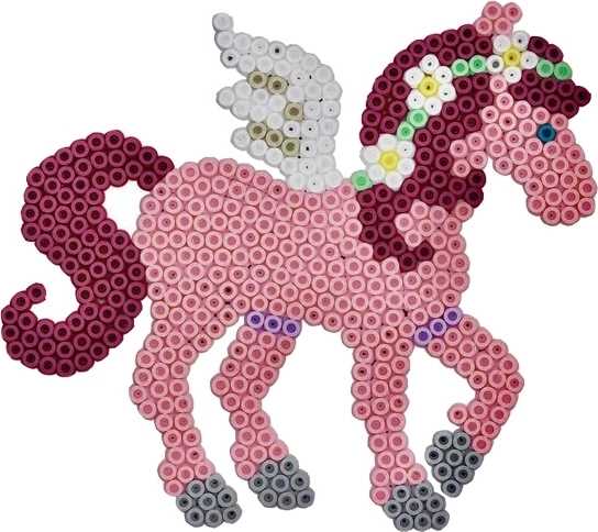 Questo set creativo offre ai bambini ore di divertimento e allo stesso tempo sostiene le loro abilità. Grazie al semplice principio di disporre le perline sulla base e poi stirarle, i bambini possono creare i propri motivi colorati di cavallini magici e altre forme.