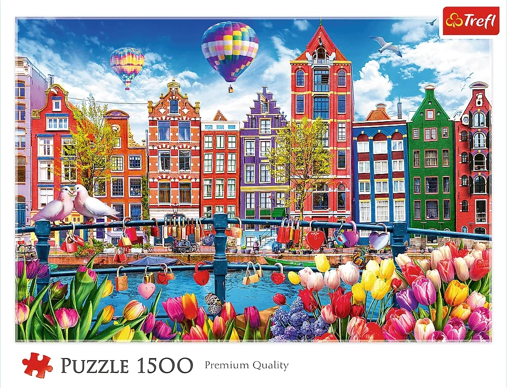 Goditi un rilassante momento di assemblaggio con il puzzle “Amsterdam Colorato” di TREFL da 1500 pezzi. Una volta completato, otterrai un suggestivo quadro di 85 × 58 cm con un motivo dettagliato e vivace delle storiche viuzze di Amsterdam – ideale per gli amanti delle sfide e come elegante decorazione per la casa.