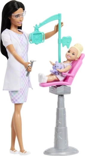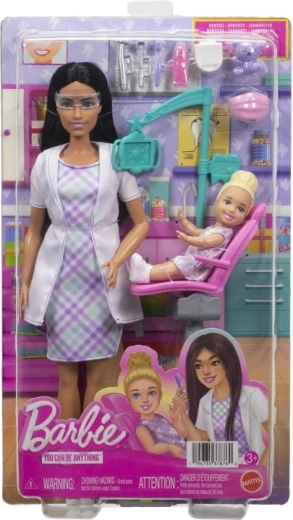 Il set di gioco Barbie dentista ispira i bambini a scoprire il mondo della cura della salute e dell’igiene orale. Include una bambola BARBIE dai capelli neri con elegante abito e camice da laboratorio, un piccolo paziente sulla poltrona rosa e accessori autentici come strumenti, bicchierino, spazzolino e dentifricio. Grazie alla poltrona regolabile e agli elementi mobili, il gioco è estremamente realistico.