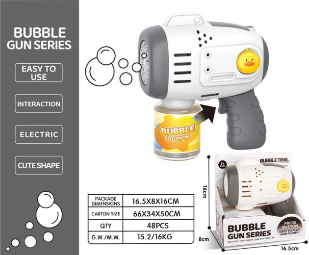 Grazie alle dimensioni compatte e alla facilità d’uso, la pistola è ideale per i viaggi e le attività all’aperto. Il serbatoio da 90 ml garantisce abbastanza liquido per giocare più a lungo e l’alimentazione con 4× AA offre libertà senza cavi.